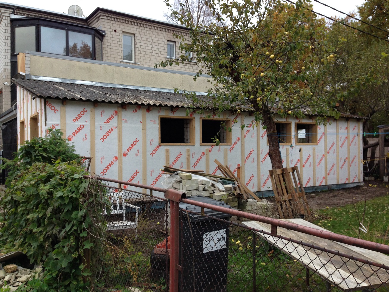 Hoonele tuleb veritkaalsest laudisest fassaad (ei ole selle hanke osa).