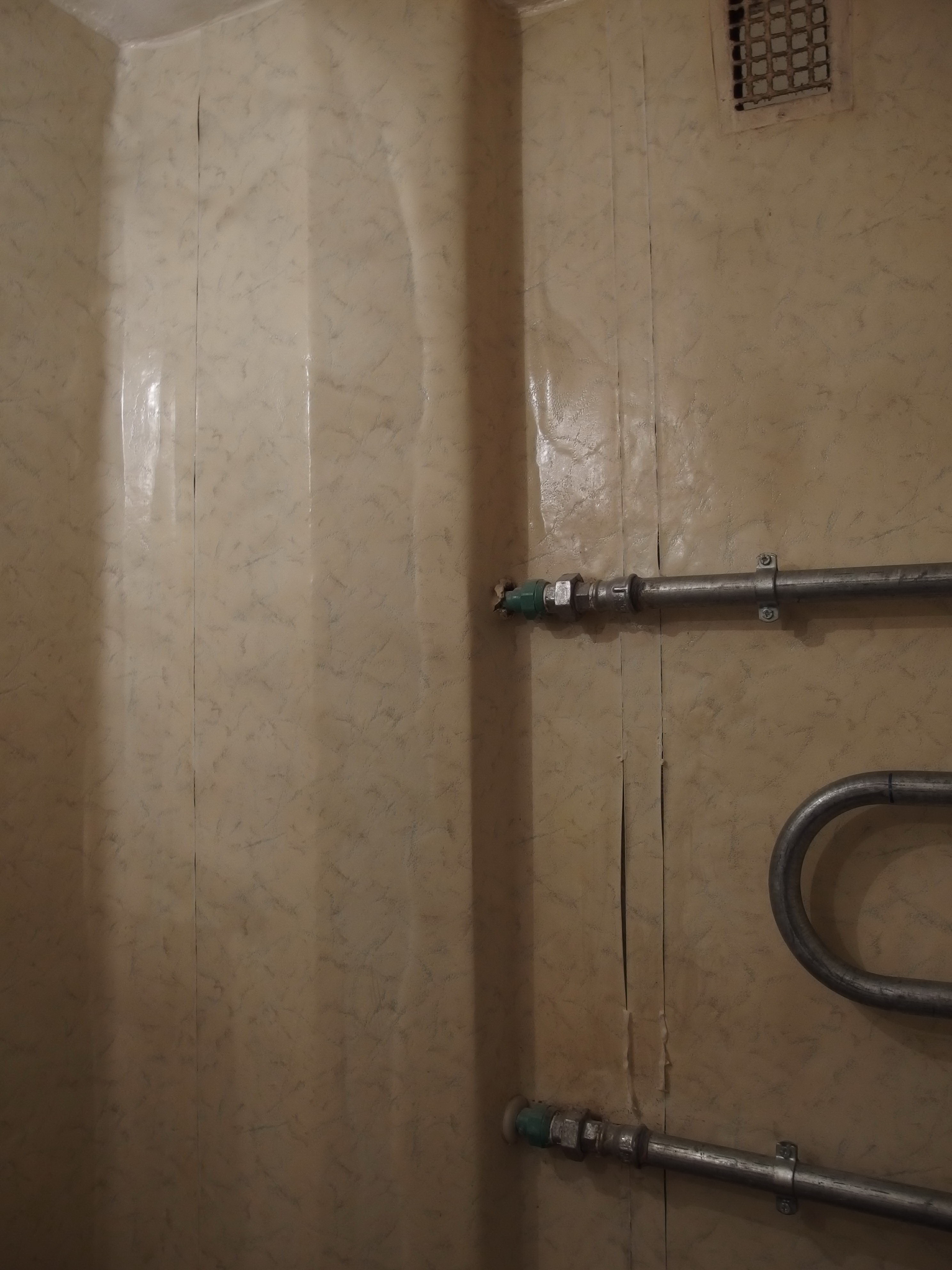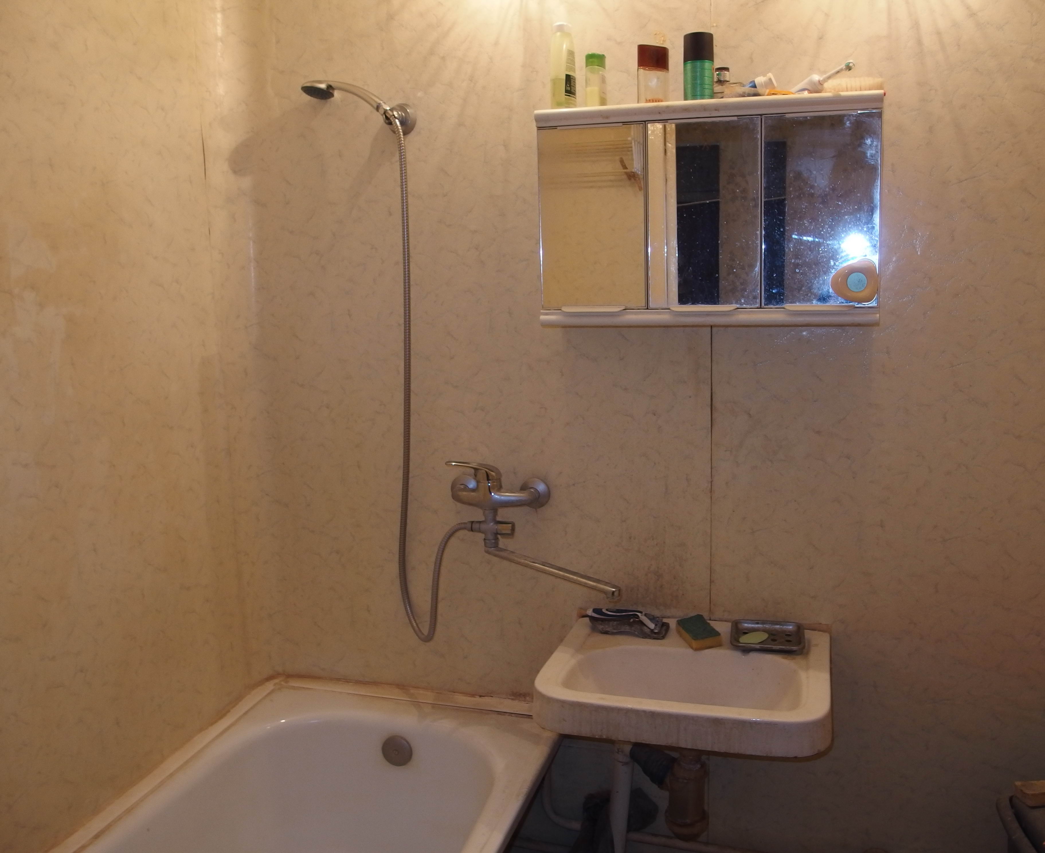 Õismäe 5 korruselise maja 3 toalise korteri vannituba. Mõõdud: 1,55x2,15m, kõrgus 2,5m. Vannitoa ühes nurgas on torupüstik. Vaja on vahetada põrandaplaadid ja põrand tasandada (hetkel on põrand keskelt pisut kõrgem), võtta maha praegune seinakate (pvc?) ja asendada kas analoogse katte või plaatidega (võib pakkuda mõlema variandi hinda. Seinad on sellised nagu ehitajd need omal ajal tegid) ja värvida lagi. Vann asendada dussikabiiniga ja paigaldada uus valamu. Paigaldada elektrikontakt pesumasina jaoks