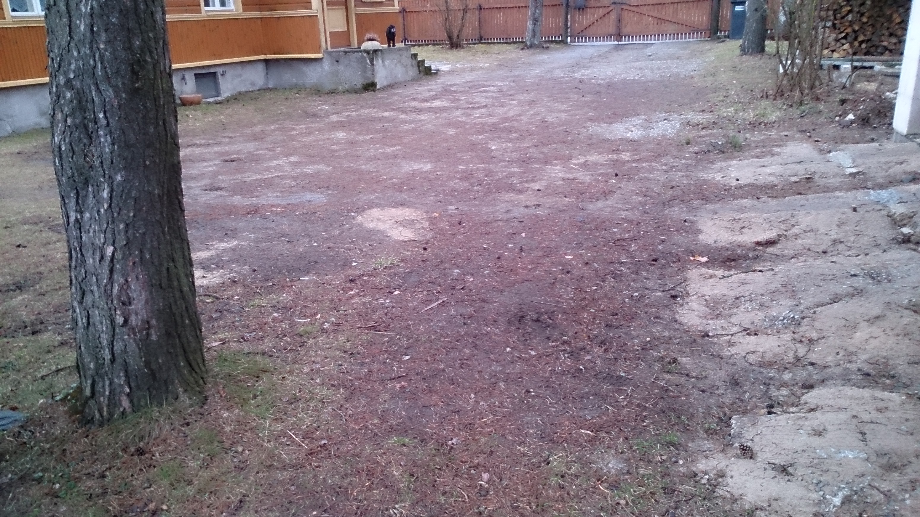 Tallinnas eramajale 200 m2 mungakivist sillutis. Vajalik pinnase väljakaeve äraveoga. Killustikalus, sängitusliiv ja sillutiskivid töö teostaja poolt. Sillutiseks hall mungakivi ja osaliselt punane mungakivi. Äär on enamuses vabakujuline ja tavalist äärekivi ei soovi.