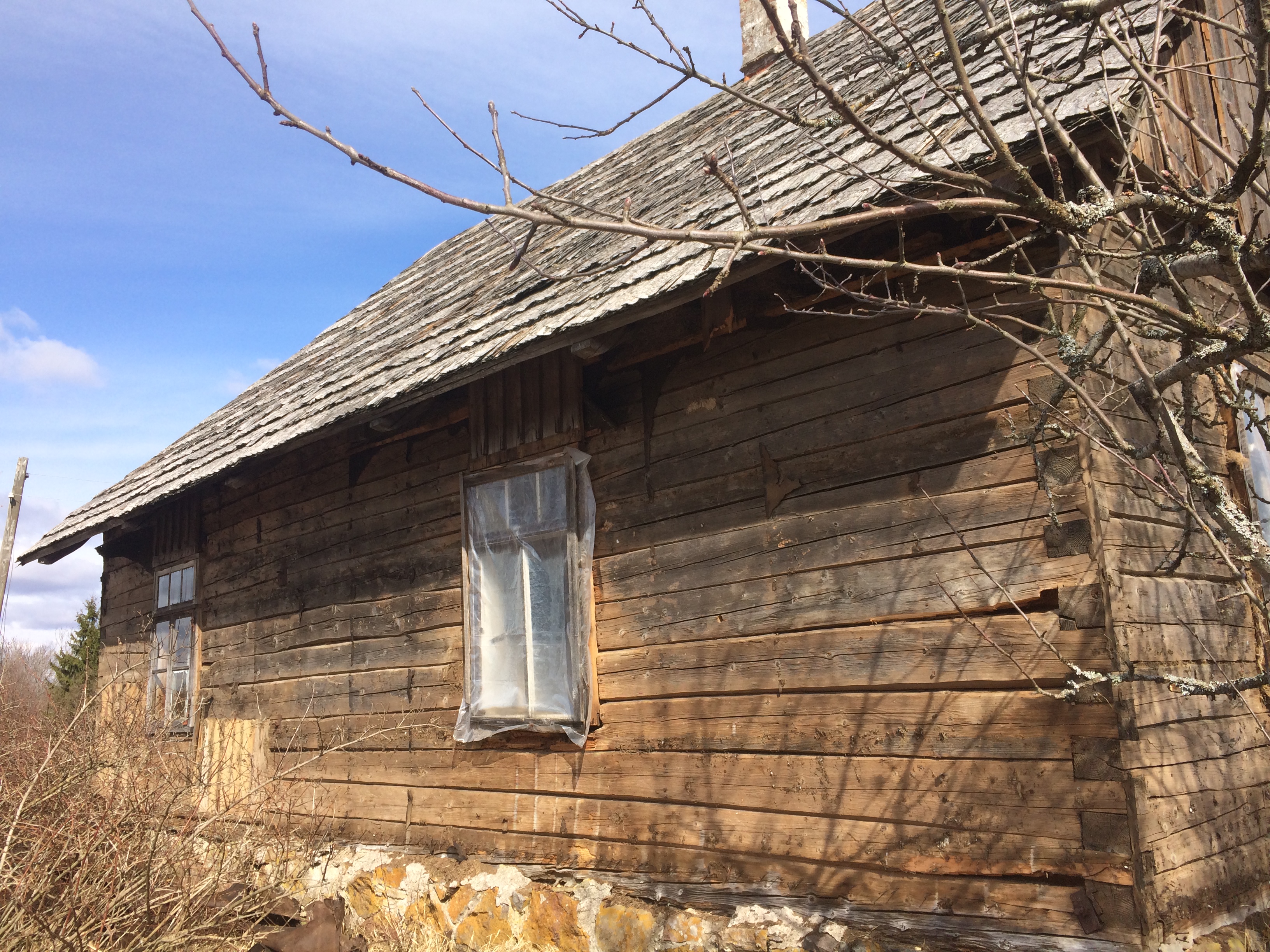 Olemasoleva palkhoone nihutamine 50 meetrit, alumiste palkide väljavahetamine, vundamendi ehitus ja uue katuse paigaldamine.