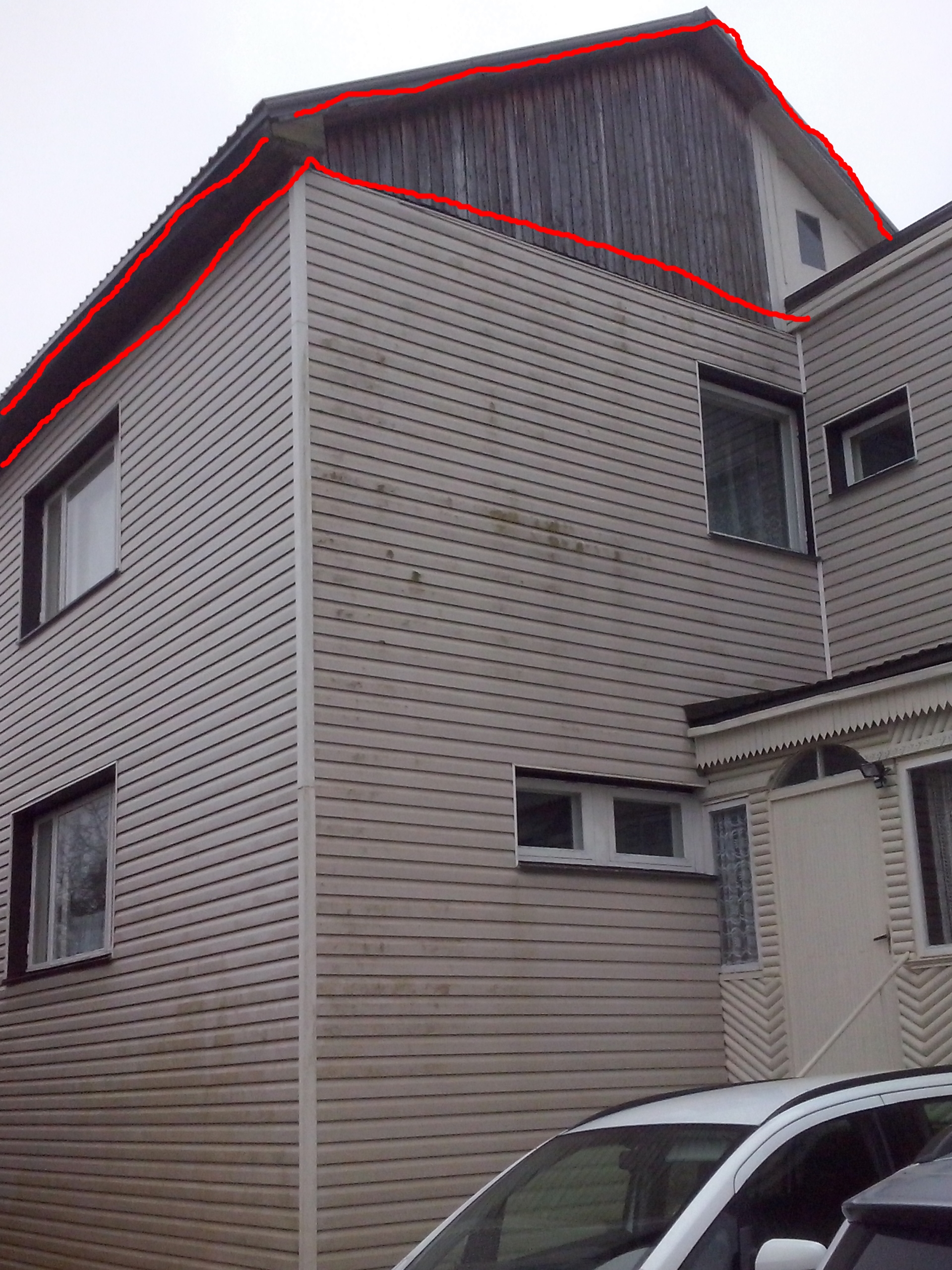Oleks vaja värvida Maardus asuva eramaja välisseinte ülemime osa (kolmnurk) ja tuulekastid.