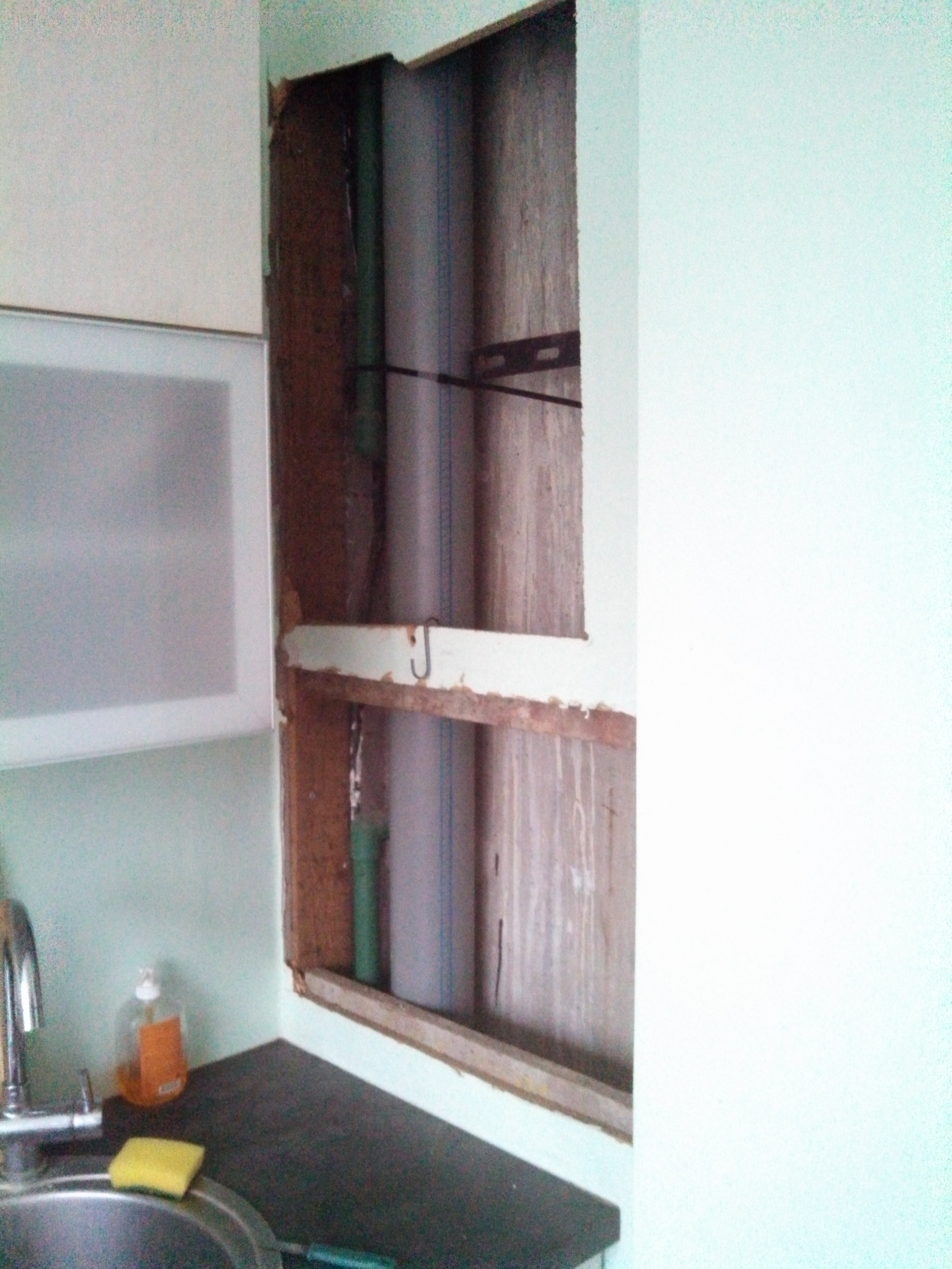 Köögis on külgmine sein kus vahetati püstaku torusid, sinna lõhuti auk seina sisse.