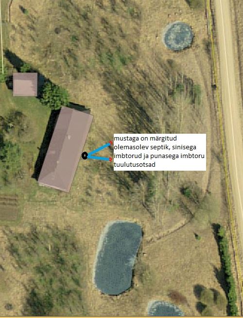Hetkel on maja taha paigaldatud septik (ecolife, 1.5 m3), millest väljub 2 imbtoru (15m pikkuselt). Kuna tegemist on VÄGA vesise pinnasega, siis maapind ei suuda vett vastu võtta (korduvalt on reovesi tuppa tagasi tulnud).