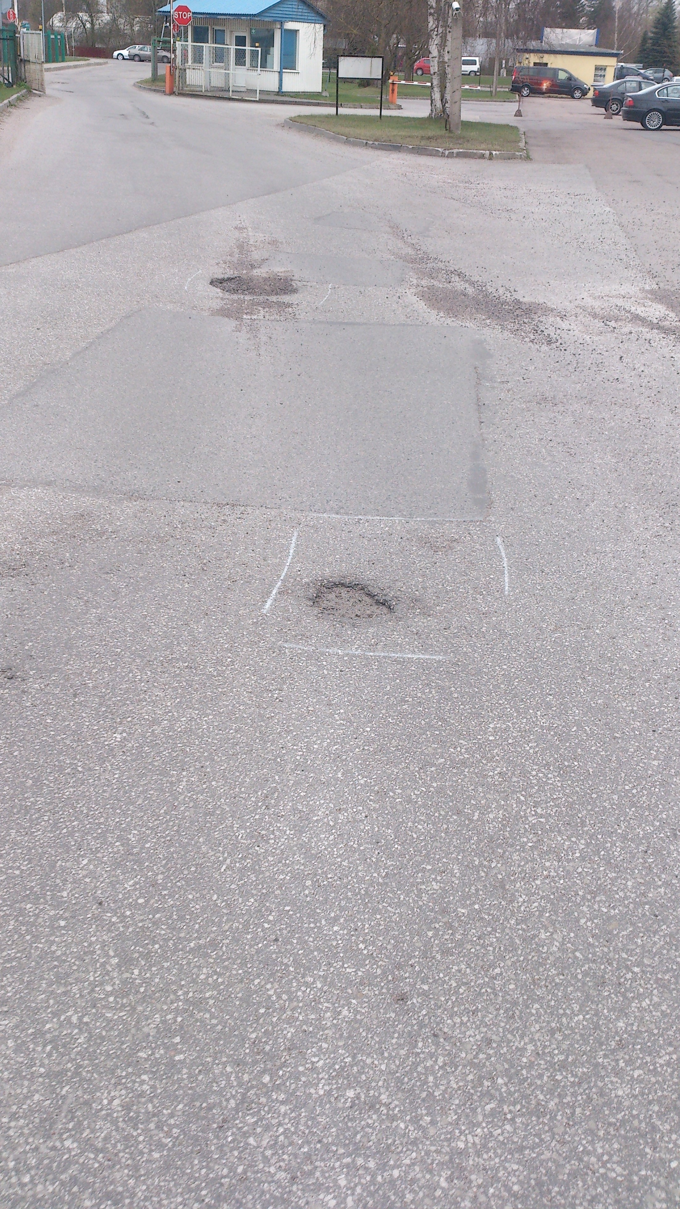 Augud lõikame välja, tihendame aluse ja lisame vajadusel killustikku. Asfalteerime ja pigitame ääred, et vesi asfaldi alle ei lähe.
