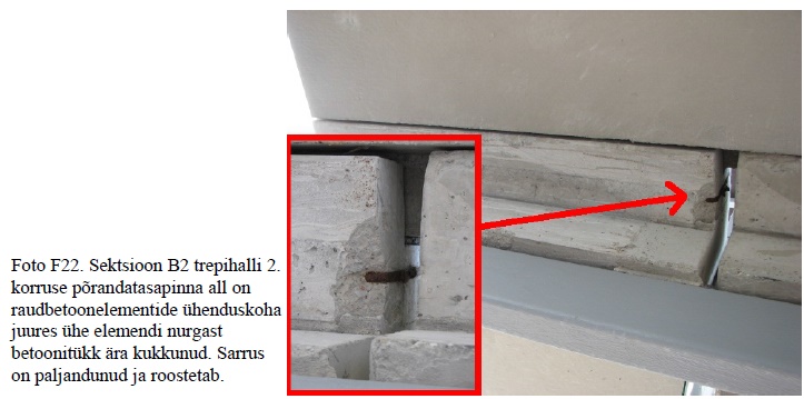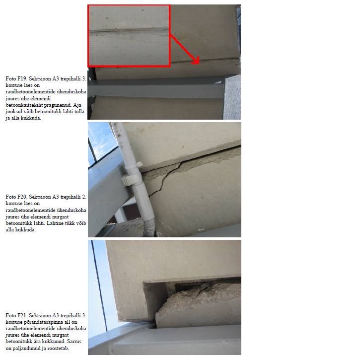 Trepigaleriide raudbetoonelemendid on üldiselt heas seisukorras, kuid elementide vuugikohtades esineb defekte, vuugitäite lagunemist ning kaitsekihi pragunemisi, mis tuleb remontida. Lisatud pildid ning väljavõtted ekspertiisiaktist.