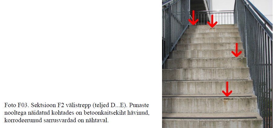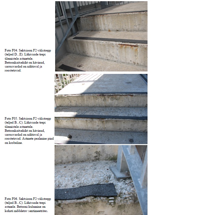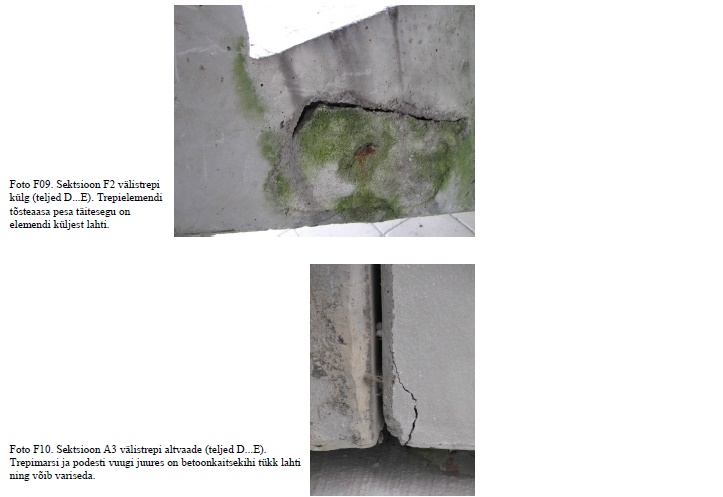 Kortermaja välistreppide raudbetoonelementide pealmised pinnad on tugevalt kahjustunud ning tuleb remontida.