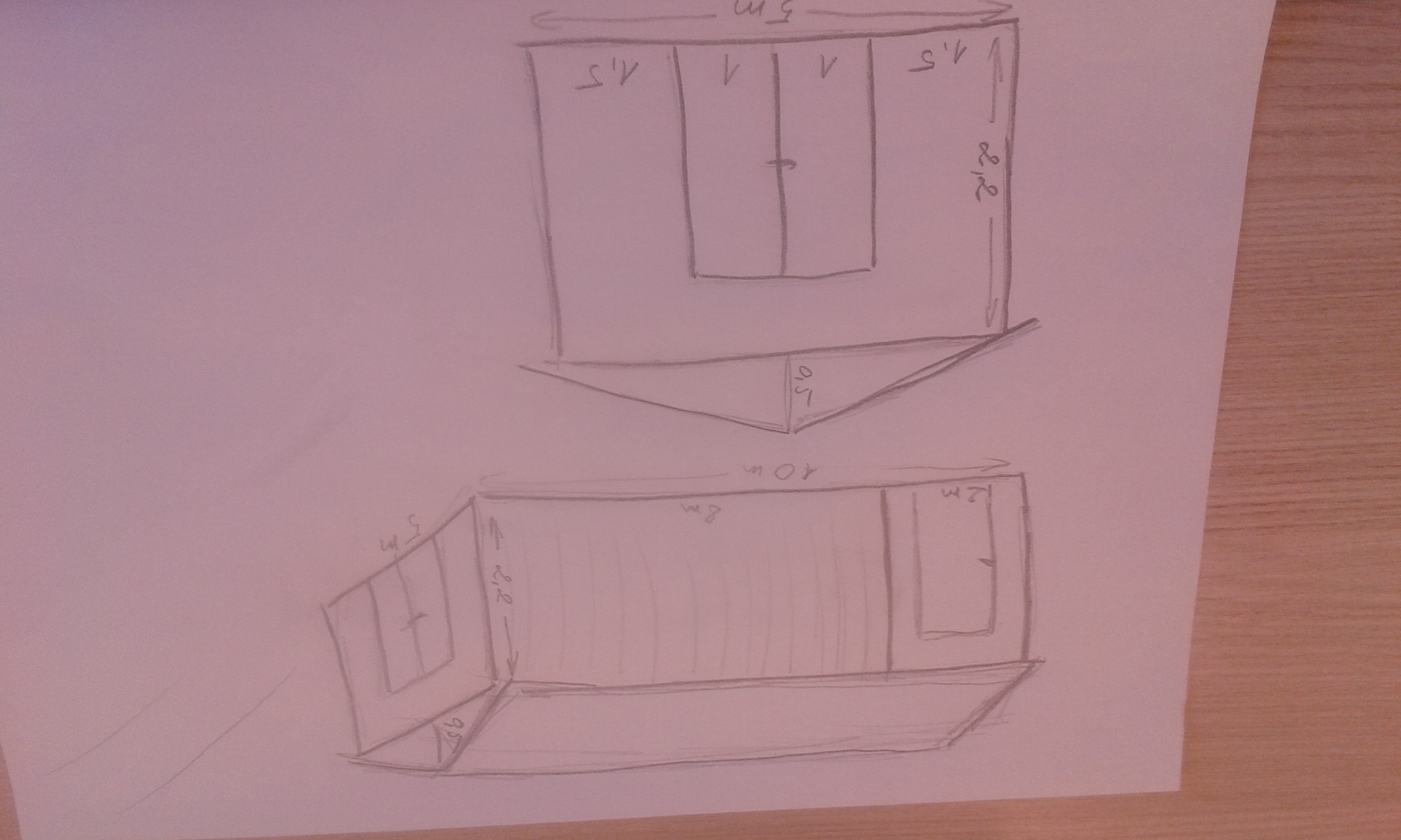 4m x 9m, ühes otsas vaheseinaga panipaik 1,5m