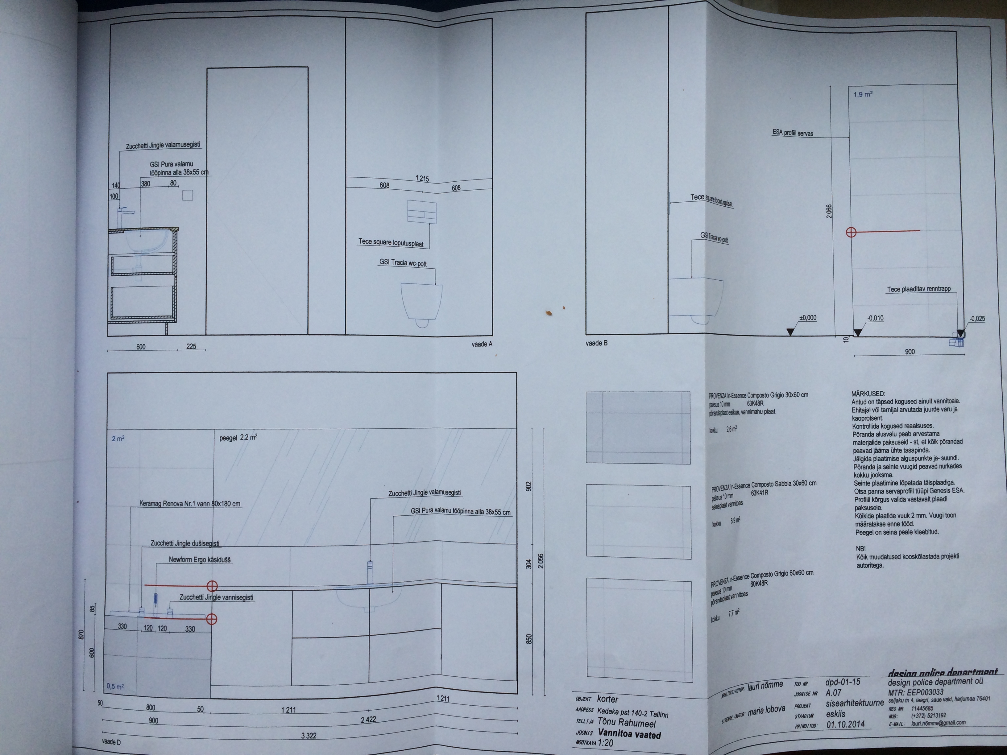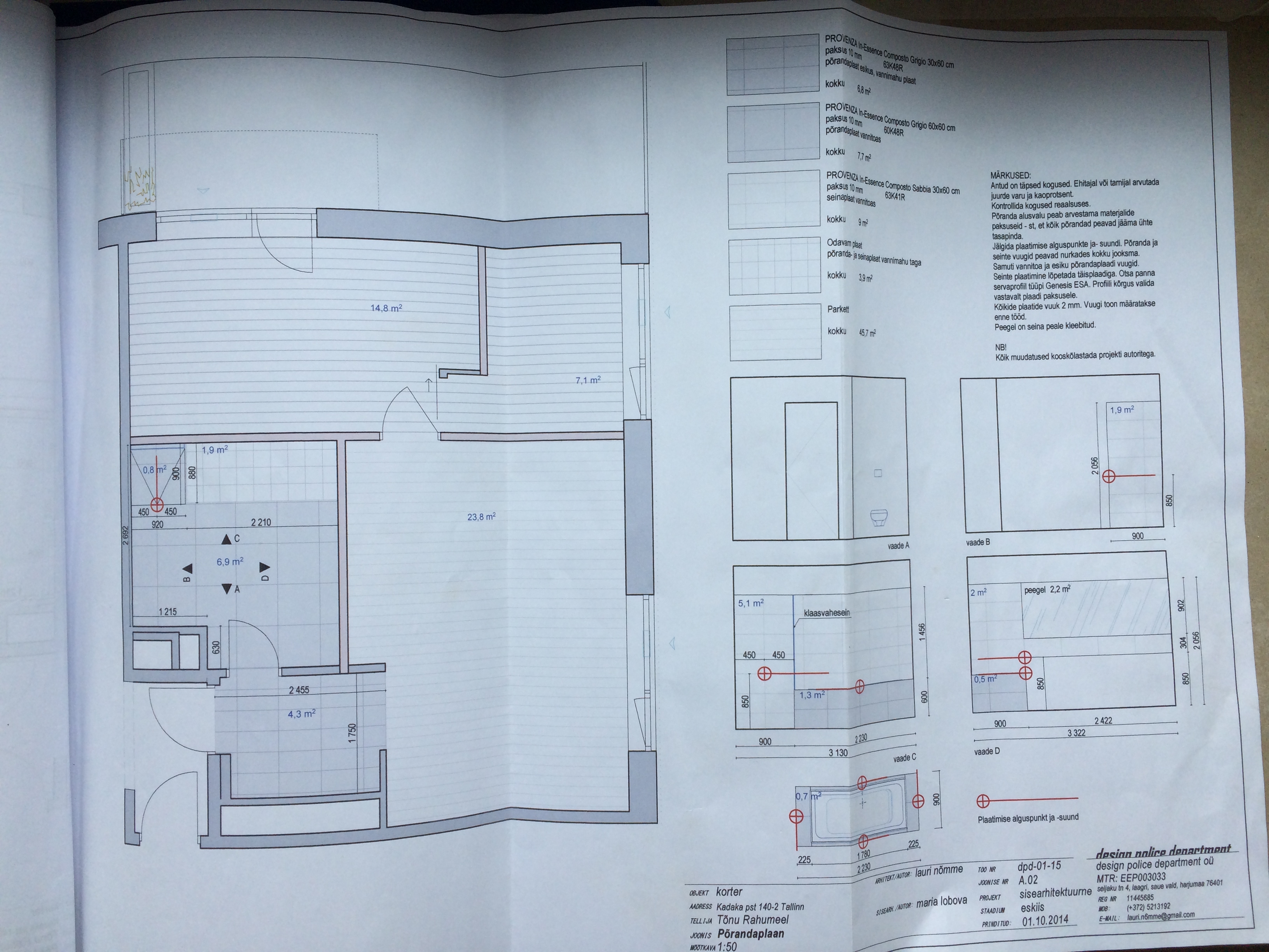 Vaja plaatida 10m2 vannitoa põrand ja osaliselt ka seinad vastavalt kaasas olevatele joonistele. Duššinurga osa ca 1m2 tuleb plaatida mosaiikplaadiga, ( seda ei ole joonisel) eeltööd on tehtud, vaja ainult plaatida, vuukida ja silikoonida, lõpuliistud Genesis. Materjal tellijalt, pakkuda ainult töö hinda, võib pakkuda ka m2 hinda.