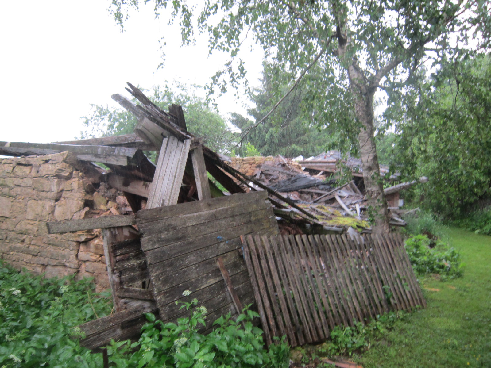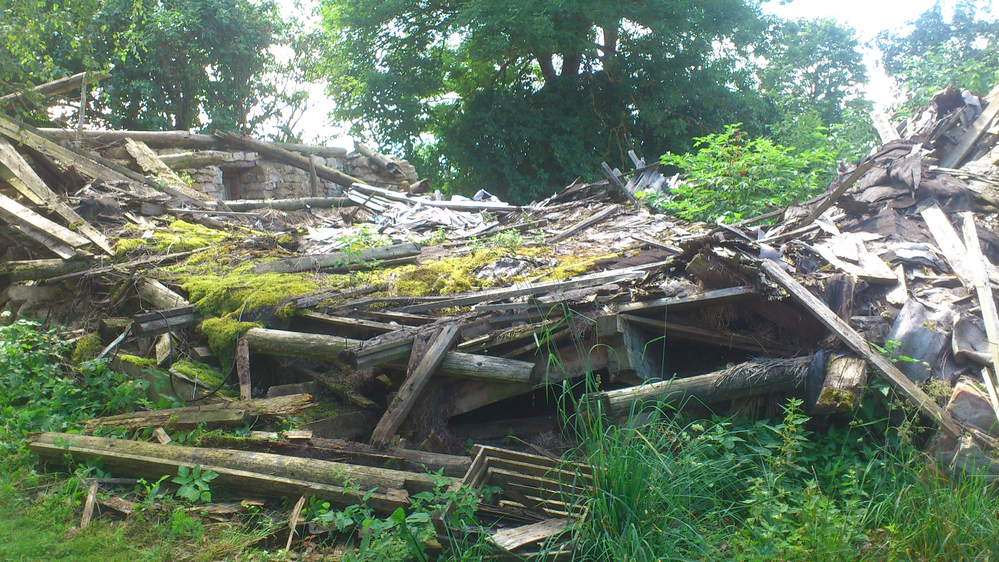 Üks osa aidast on lumega kokku kukkunud, nüüdseks on puiduosa ise ära veetud aga alles on aidas olnud hein, viilkatus jm praht. Enamus paekivist jääb sammuti alles. Teine osa aidast on veel püsti, ning katuseks on eterniit. Vaja oleks kõik see kupatus auto peale laadida ja prügilasse vedada. Prügila ladustamise tasud tasun ise eraldi.