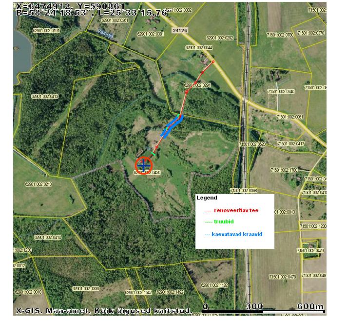 140 m ulatuses vajalik kaevada 0,5 m sügavune kraavike kahelepoole teed suubumisega peakraavi.