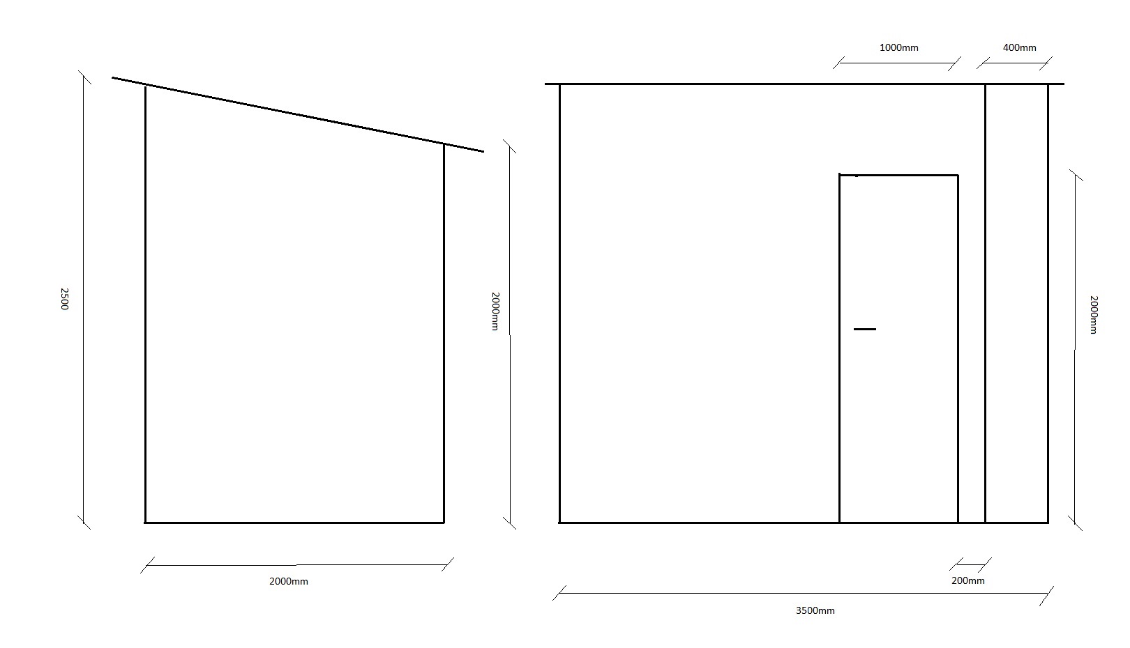 Põhja pindala 3,5 x 2 meetrit. Kõrgus eest 2,5m, tagant 2m.