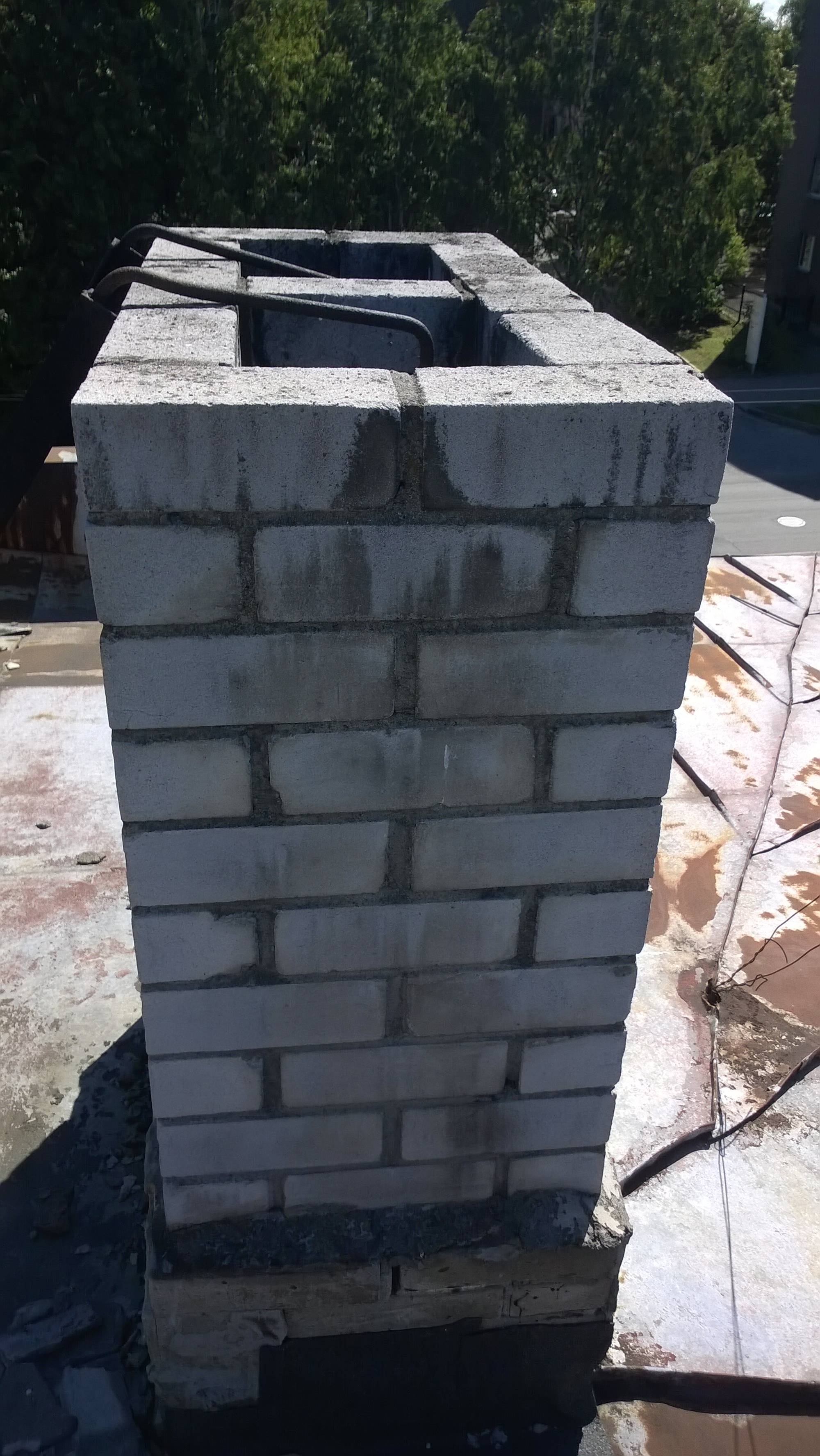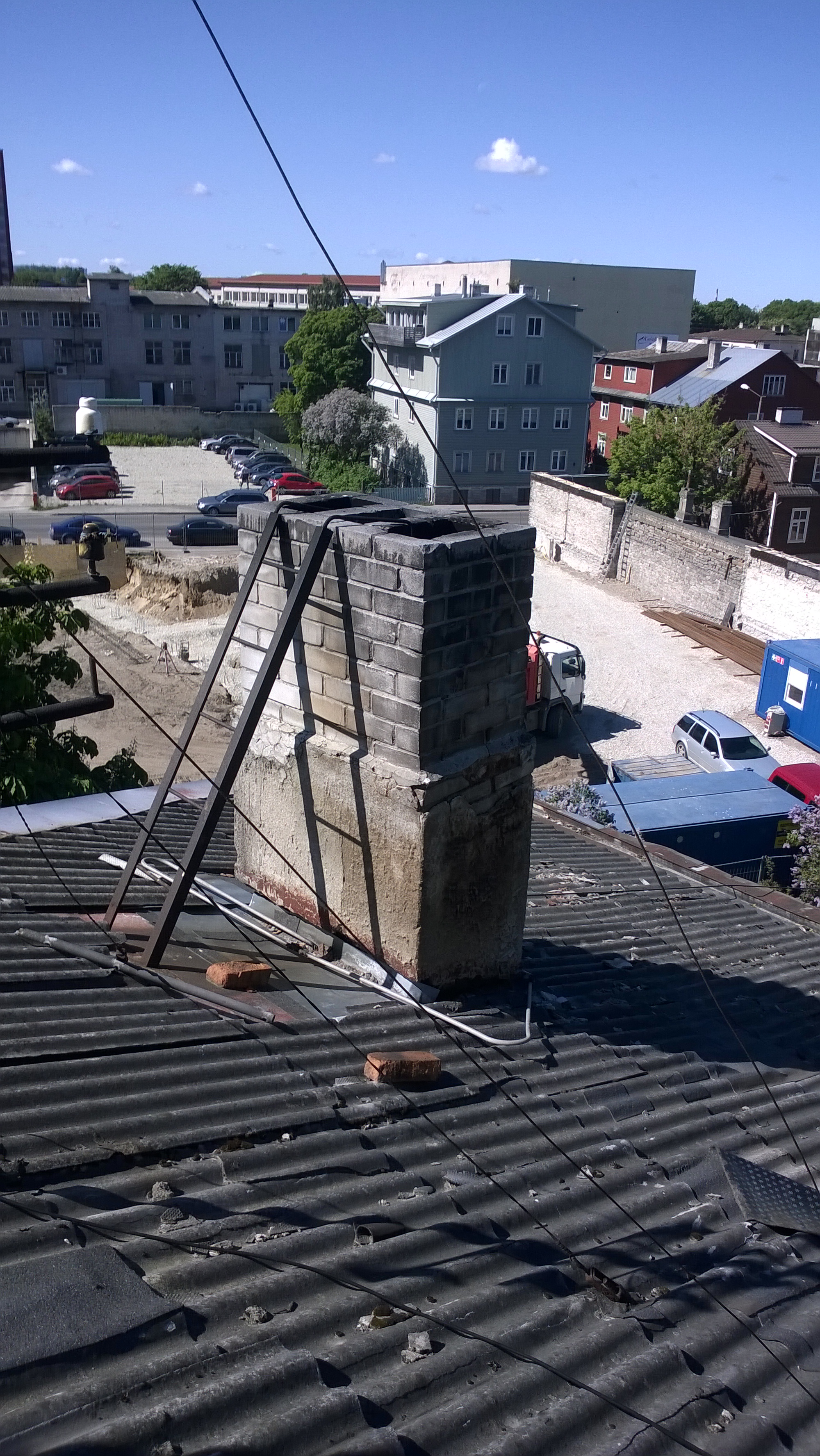 Vanade korstnaosade lammutamine ja uute ehitus ja korstnaotsaplekkide paigaldus.Ehitusmaterjal tellis.