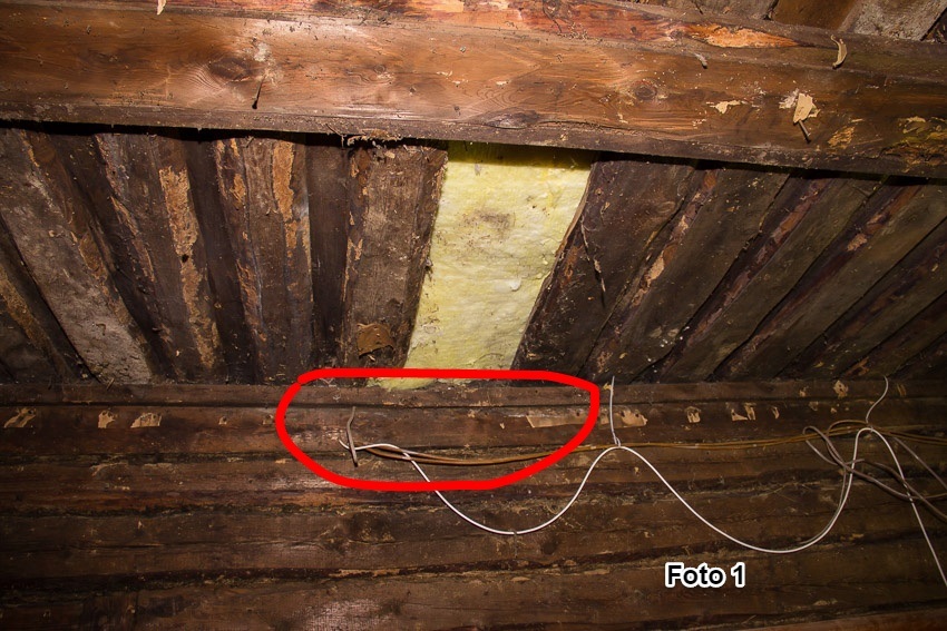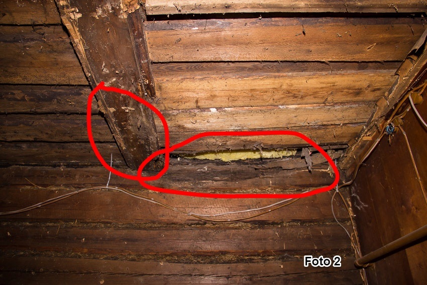 - Palk otsaseinas (umbes 1 m ulatuses; foto 1) ning