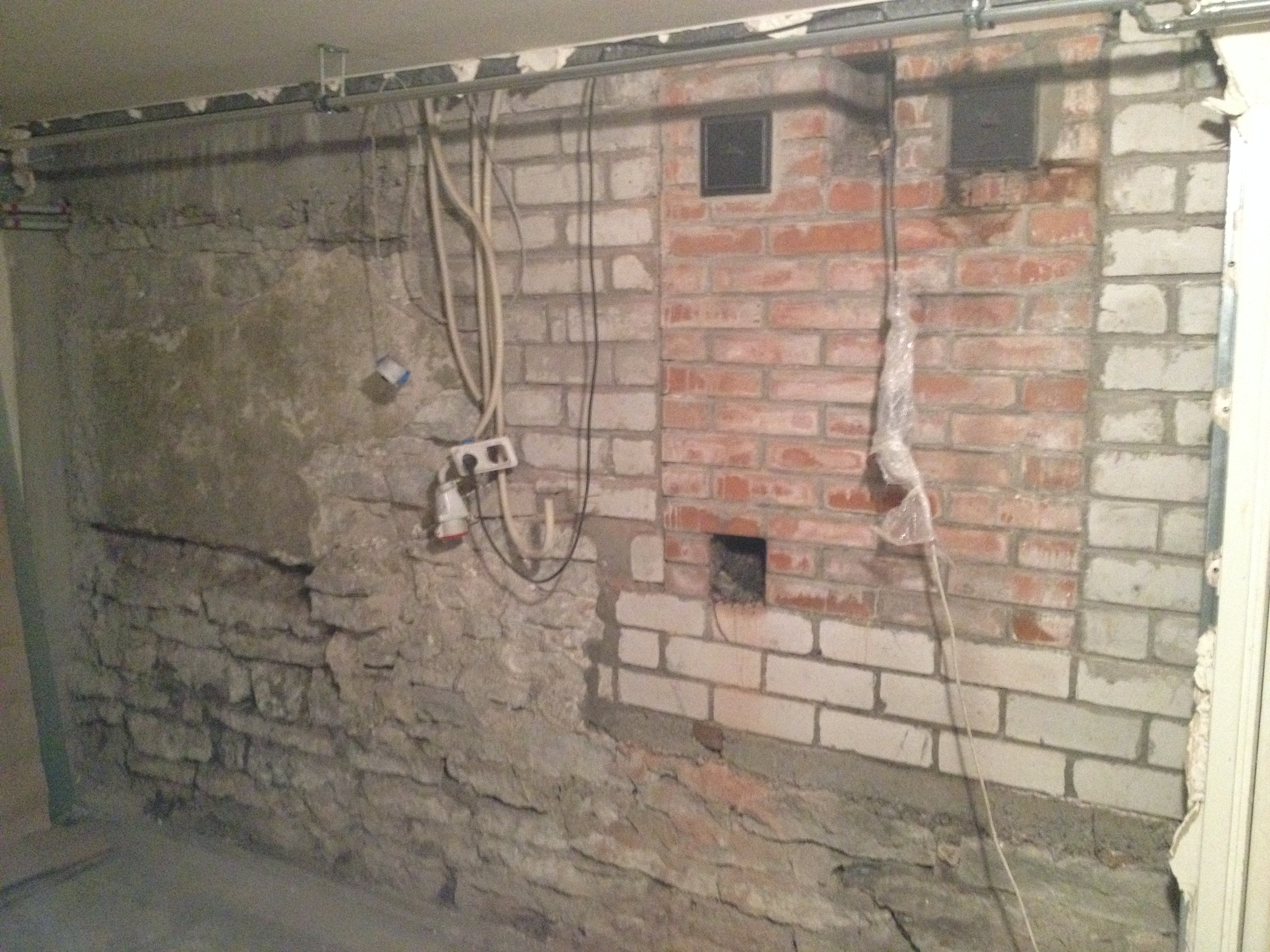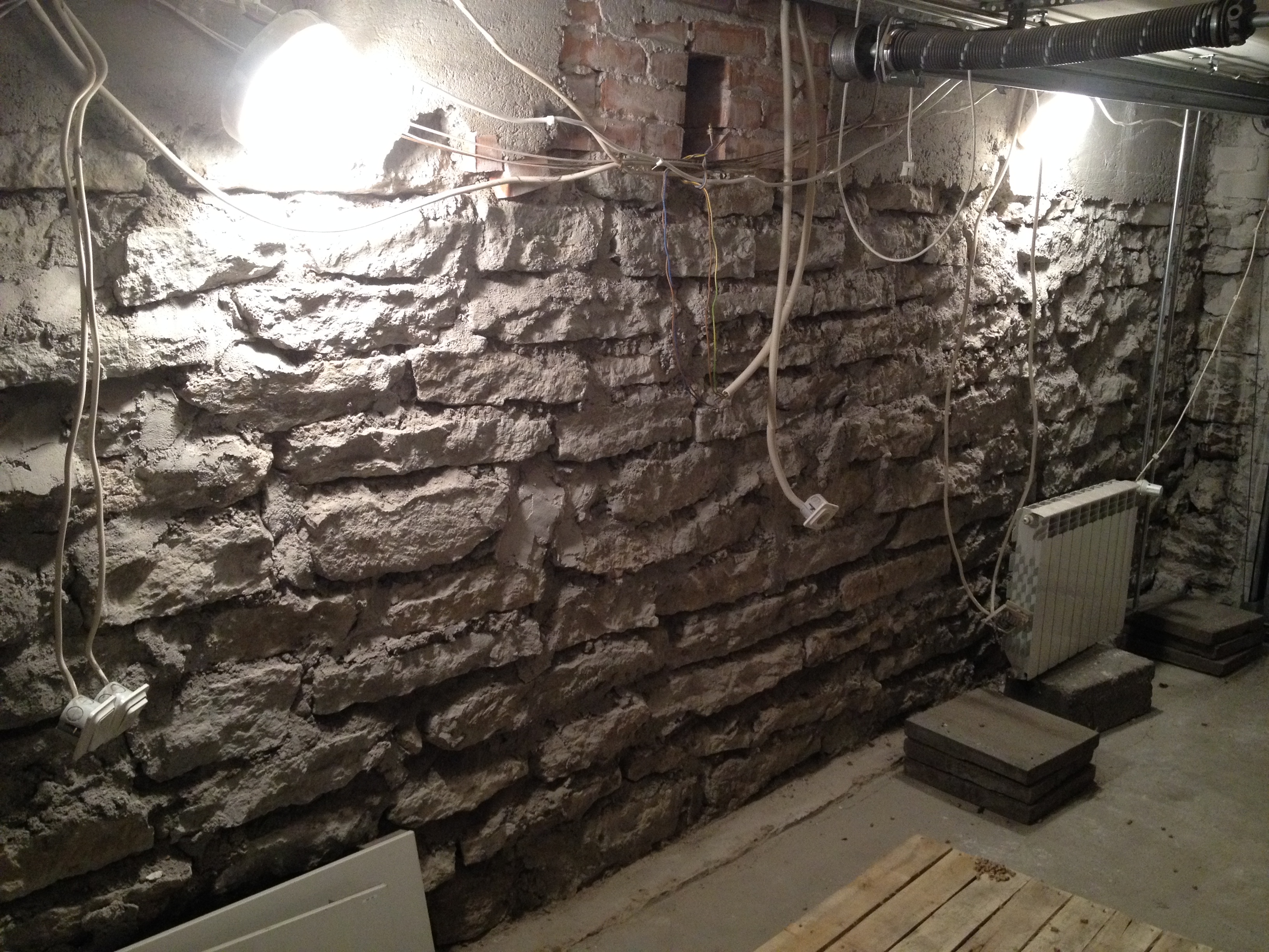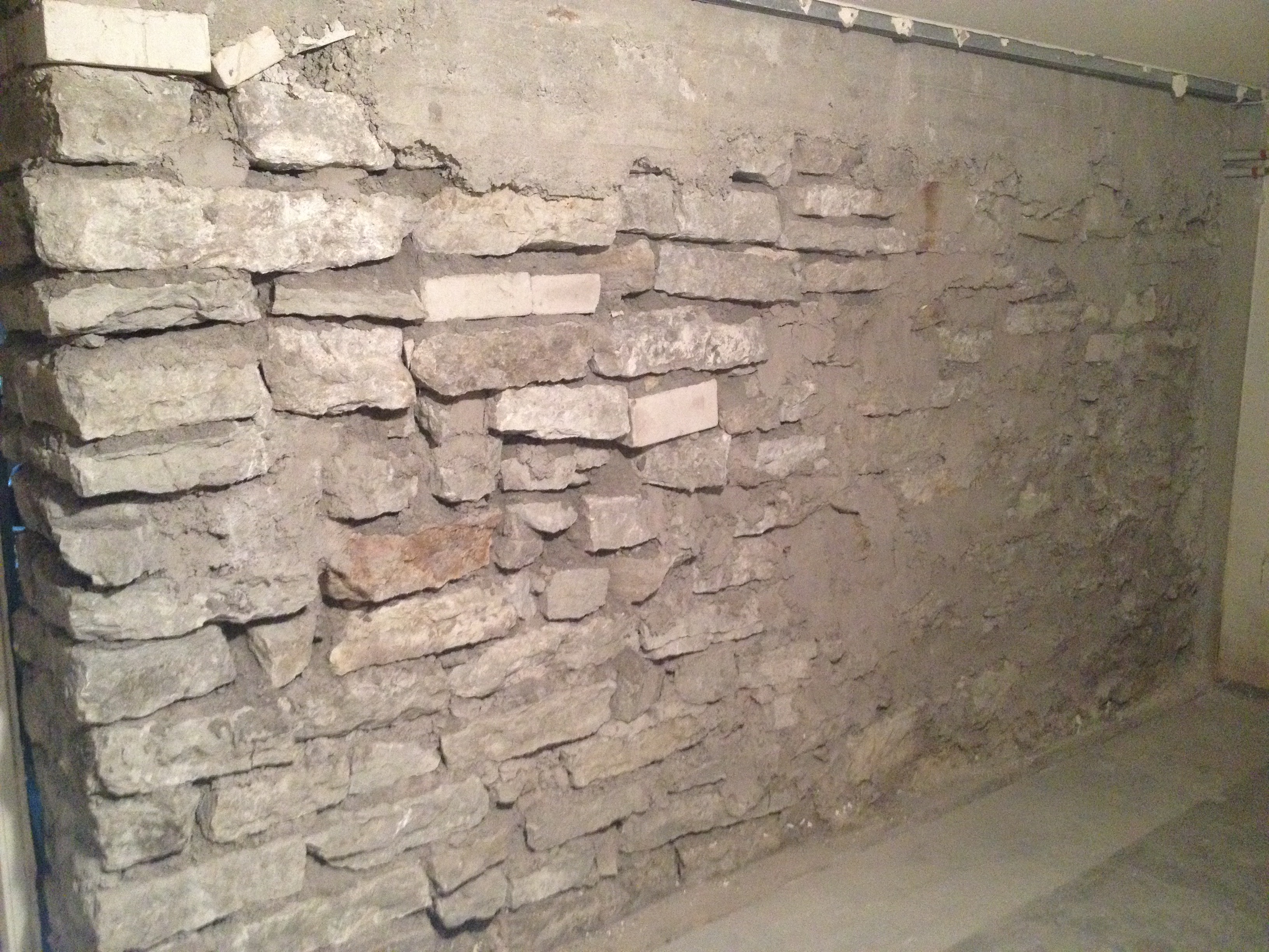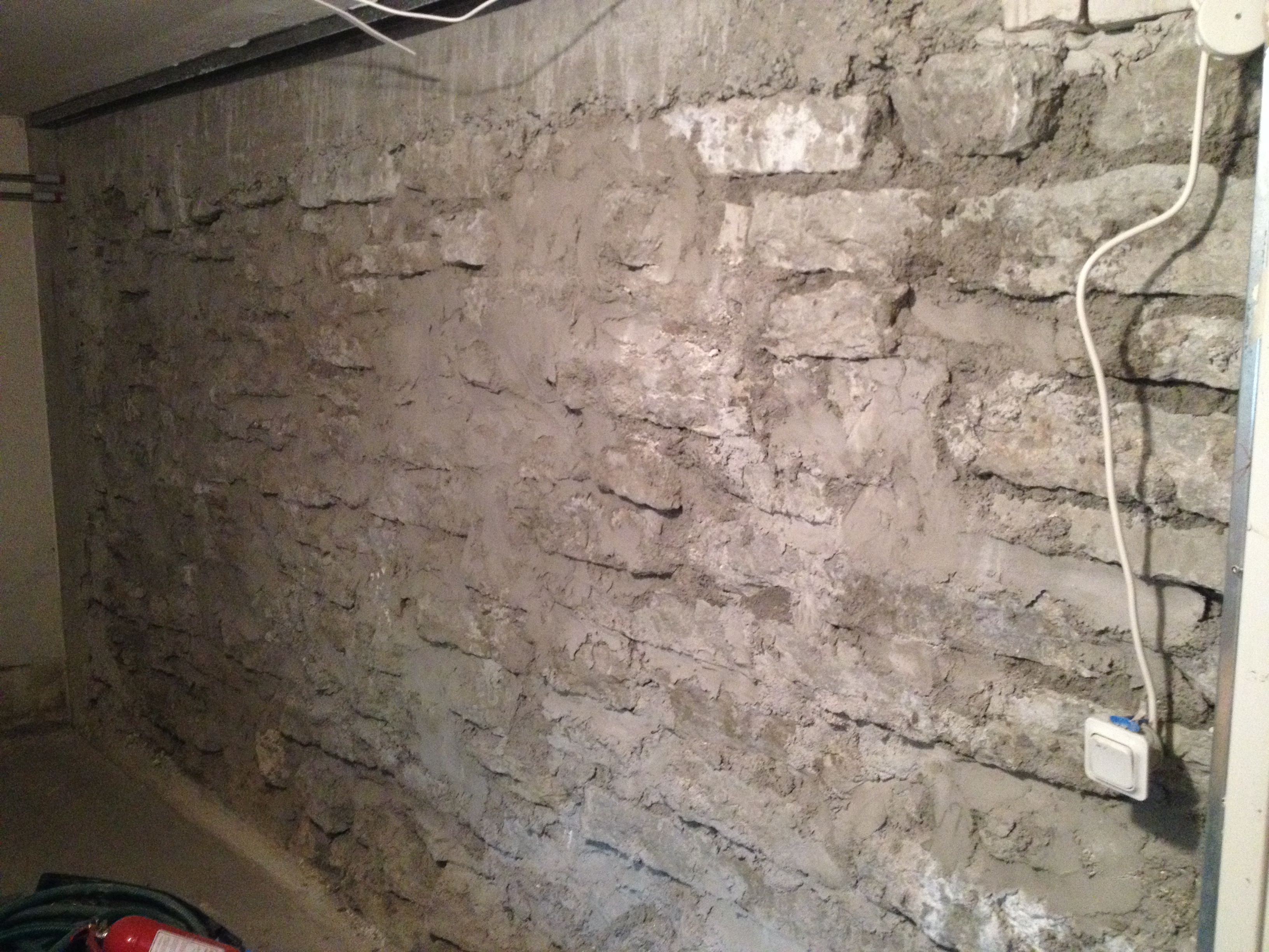 Üsna ebatasaselt (vt. pilte) laotud paekiviseinad vaja sirgeks krohvida. Seinapinda 45 ruutmeetrit. Ruumide kõrgus 220cm.