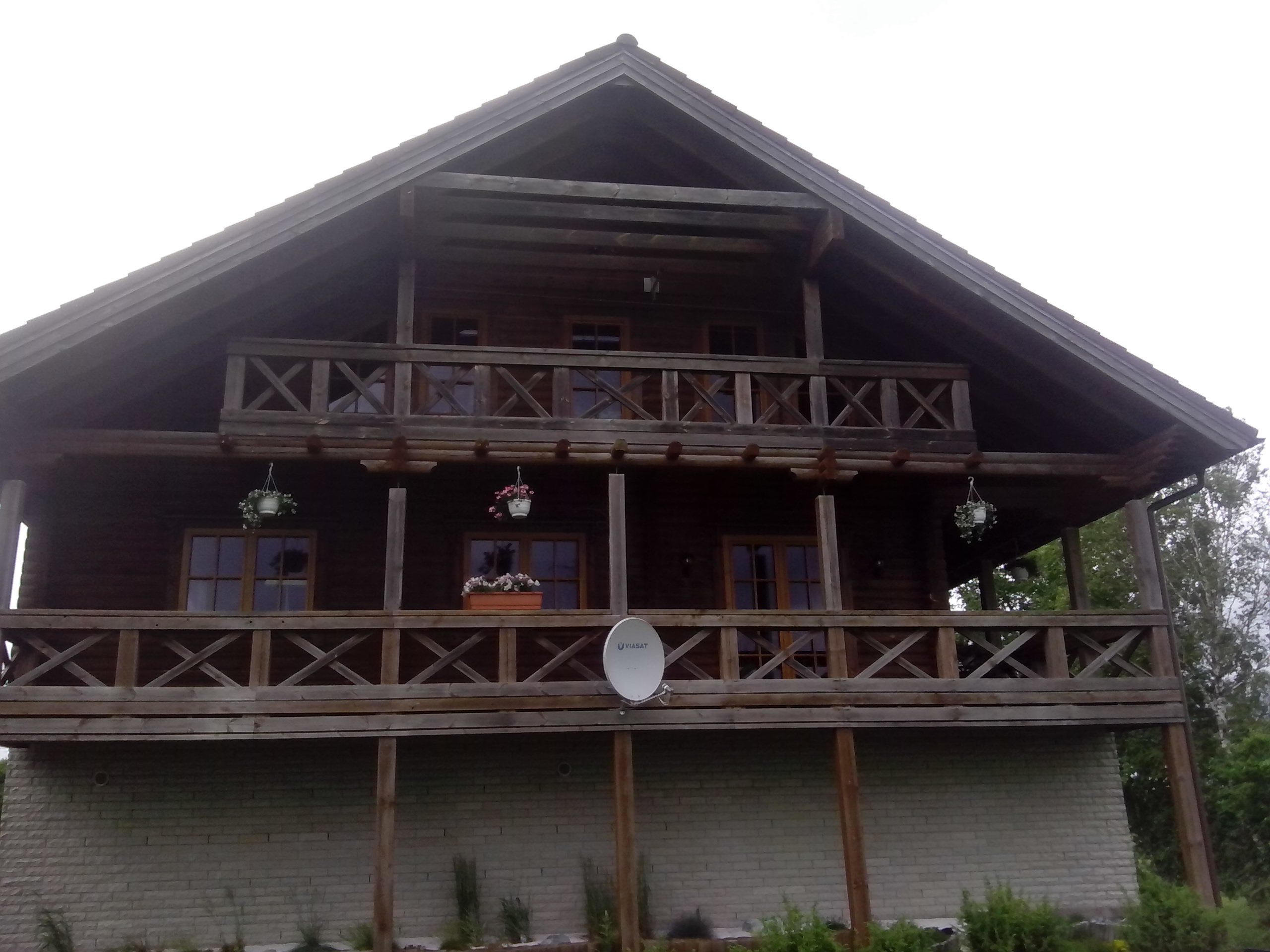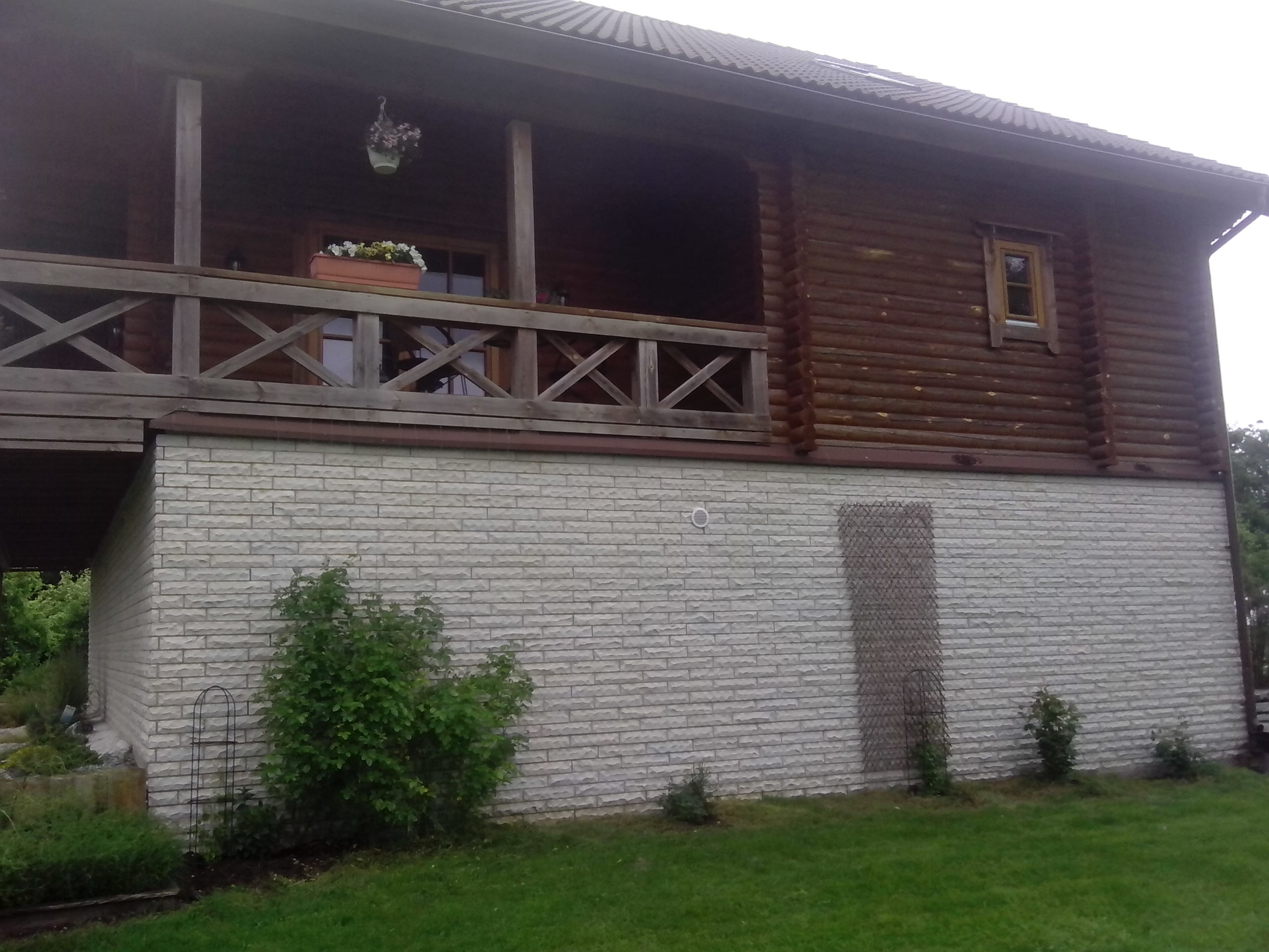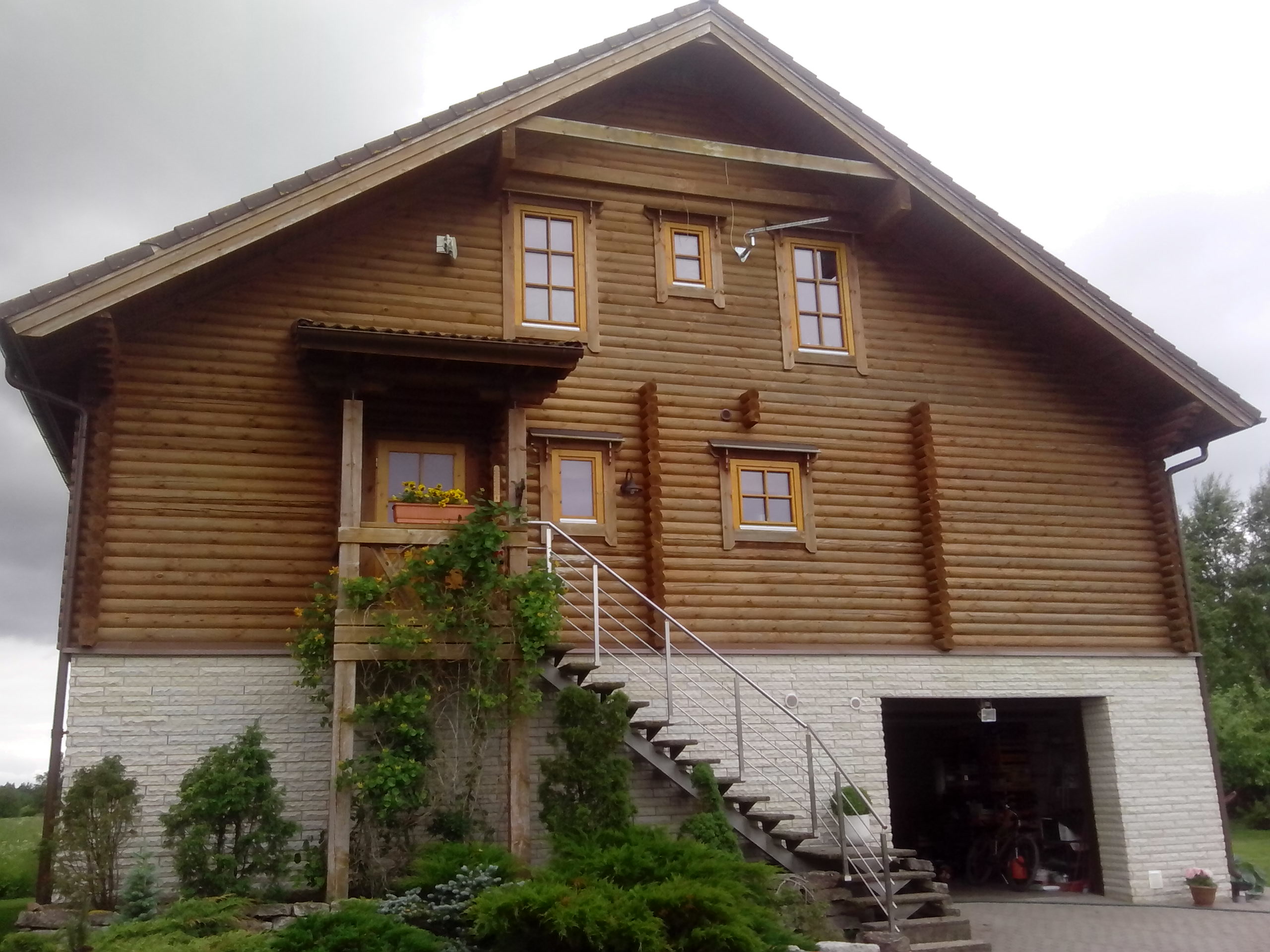 Teistkordne palkmaja värvimine. 15cm diameetriga freesitud ümarpalk, ülal palgiimitatsiooniga laudis. Seinapinda ca 170m2, lisanduvad rõdupiirded, tuulekastid jms. Maja valmis ja esmakordselt värvitud Remmers pinia puidukaitsevärviga 2002.a. Värvikulu esmakordsel värvimisel 2-kordse katvusega 65l. Palgiosa asub kõrgel 3m paekivist soklil (vajalik sokli kaitsmine värvi eest!) ja koosneb põhi- ja katusekorrusest. Majal on suur rõdu.