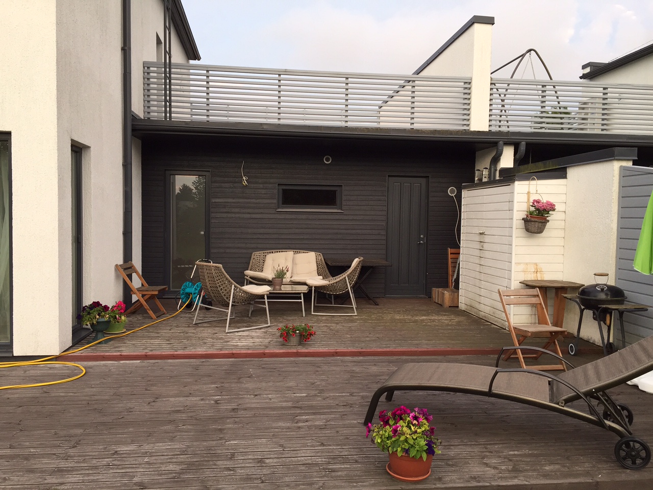 Soovin projekti väliterassi kinniehitamiseks sauna eelruumiks. 4x7m. Teha vundament ja valada põrand. Kaks seina olemas maja seintena, kolmas sein vajab kõrgendamist ja isolatsiooni, neljas muru poolne sein oleks maksimaalselt avaneva klaas seinte/ustega. Teha katus. Kuna soov on, et ruumi kõrgus oleks min 3m, siis on vaja lahendada küsimus katuste ühendamise osas.