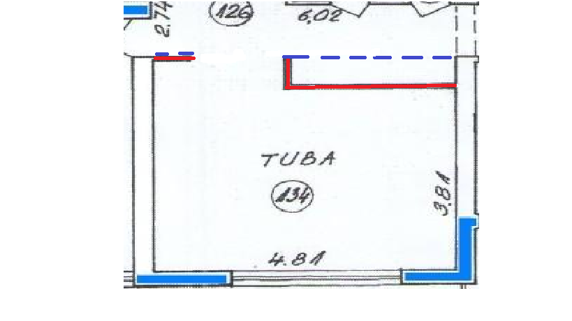 Ja sobivusel ehitada asemele uus metallkarkassil kipssein (sinisega märgitud joonisel) ukseavaga ~2000mm lai ja 240mm kõrga. Ust sisse ei tule.
