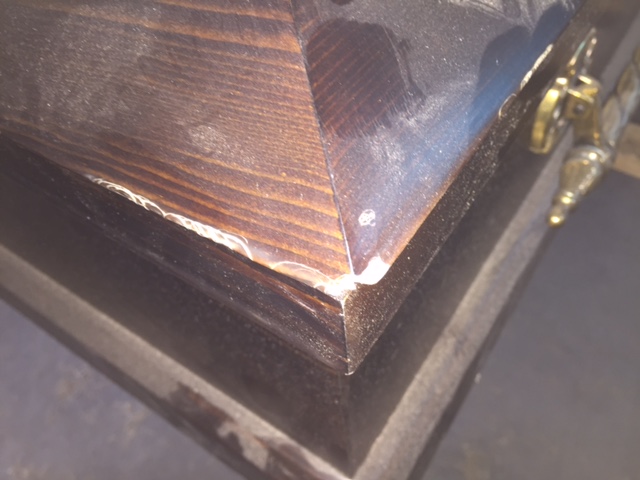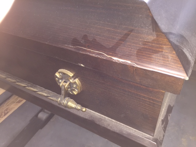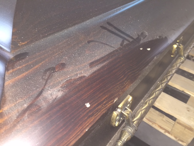 Tegemist on pikalt laos seisnud ja tõstmistega kahjustatud täispuidust puusärgiga. Sellel tuleb mõned nurgad ja täkked restaureerida, võibolla vana viimistlus (peits ja lakk) eemaldada ning seejärel uuesti viimistleda.