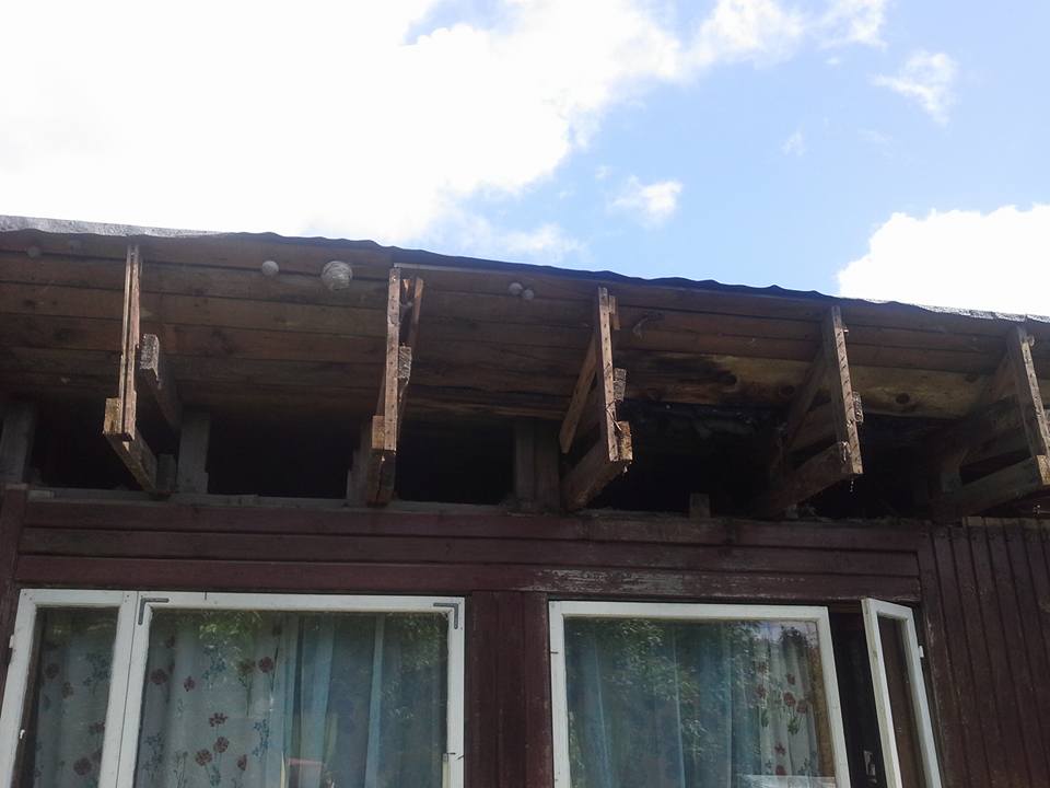 Katus 70m2 (kalle ca10 kraadi), harjaplekk 11,5m, otsaplekk 2x6m, korsten. Vaja eemaldada vana kate (ruberoid, üsna lahti), (saan aru, et ka laudis läheb maha?) saagida fermid 200mm otstest lühemaks (hetkal 700mm), parandada fermid kus vaja. Tuua ja paigaldada trapetsprofiilkatus RR32 (pruun), distantsliist, aluskate, roovitus. Paigaldada otsa ja harjaplekid, korstna liiteplekid.