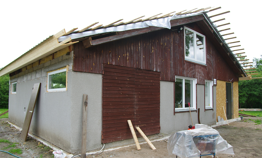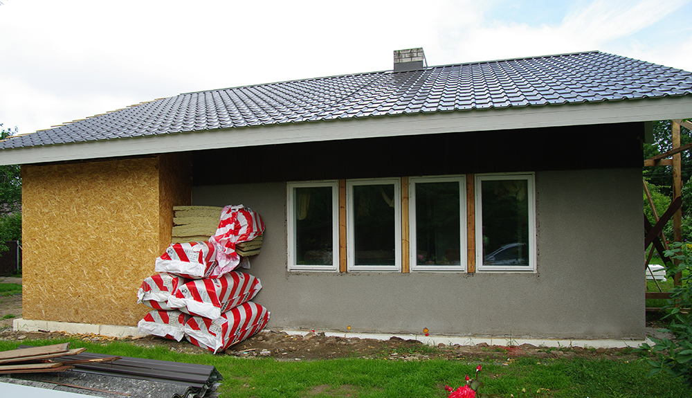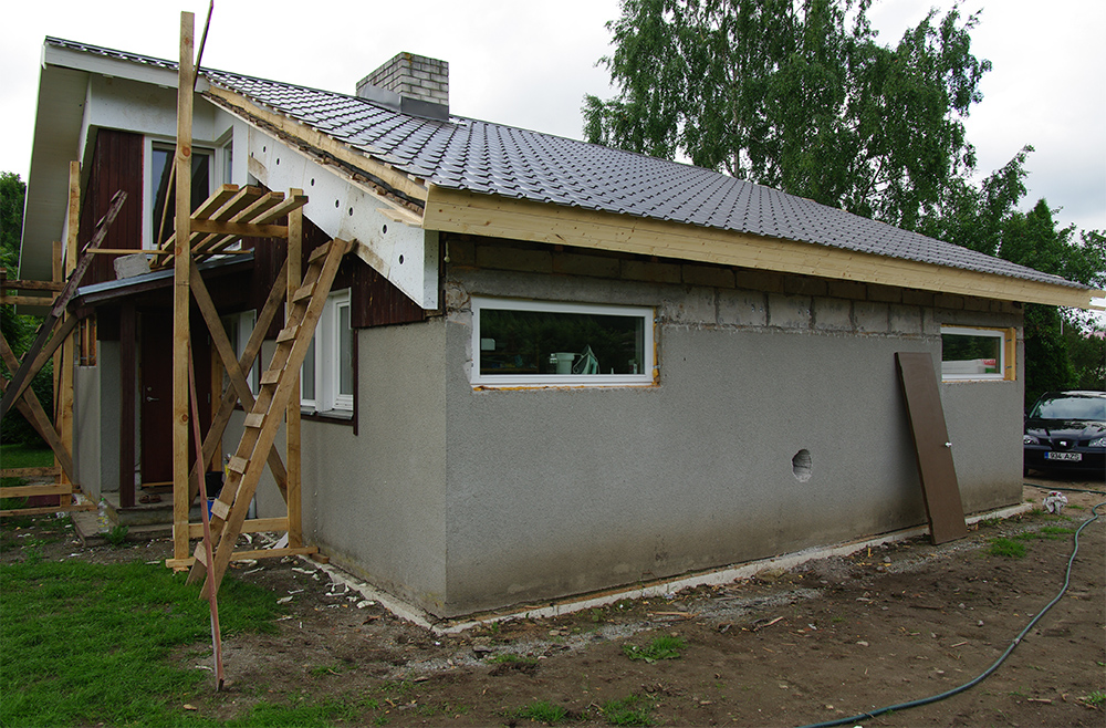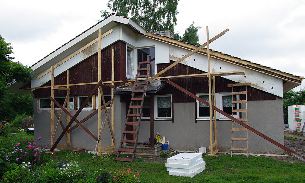 Väikese maja välisfassadi soojustamine 100 mm vahtpolüstüreeniga ja viimistlemine õhekrohviga. Fassaadi pindala on 100 - 110 m2 ilma avadeta. Maja kõrgus on 5,2 m, räästa kõrgus maast ca 2,5 m, seega suure osa tööst saab teha ilma tellinguteta.