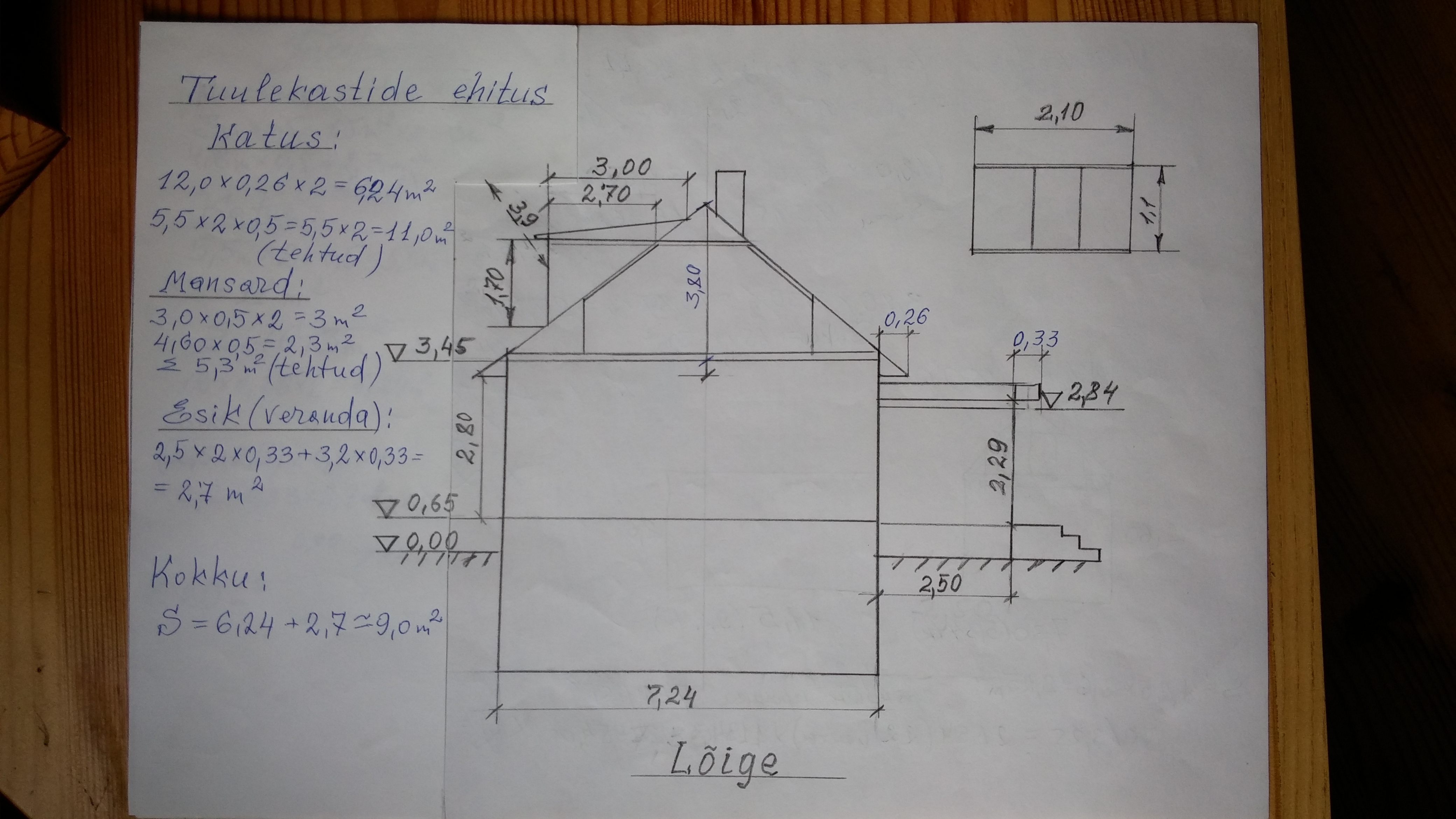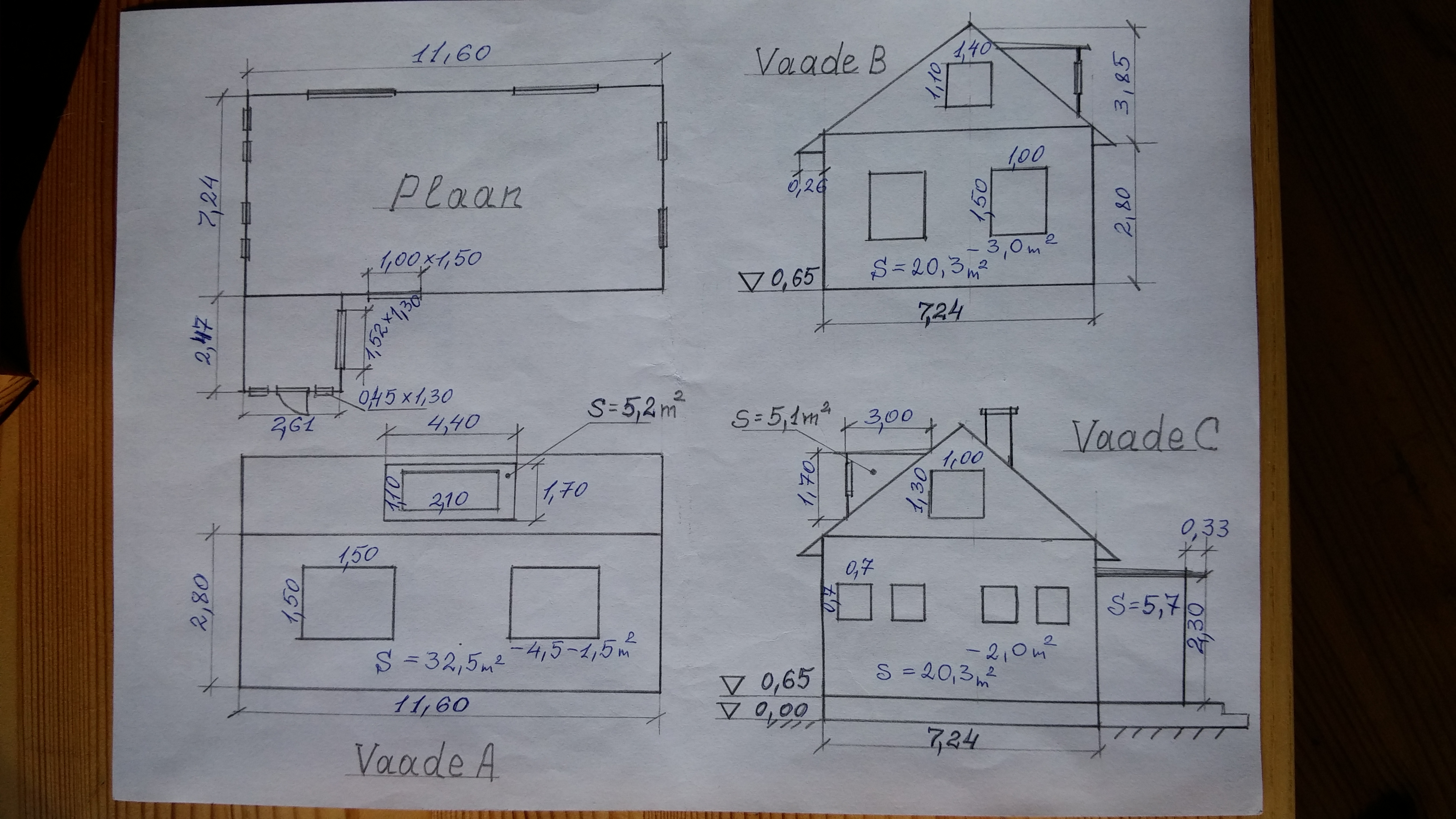 Fassaadi mahtu on 136.5m2(aknad ja uksed välja arvestuna).Tuulekastid osaliselt tehtud.