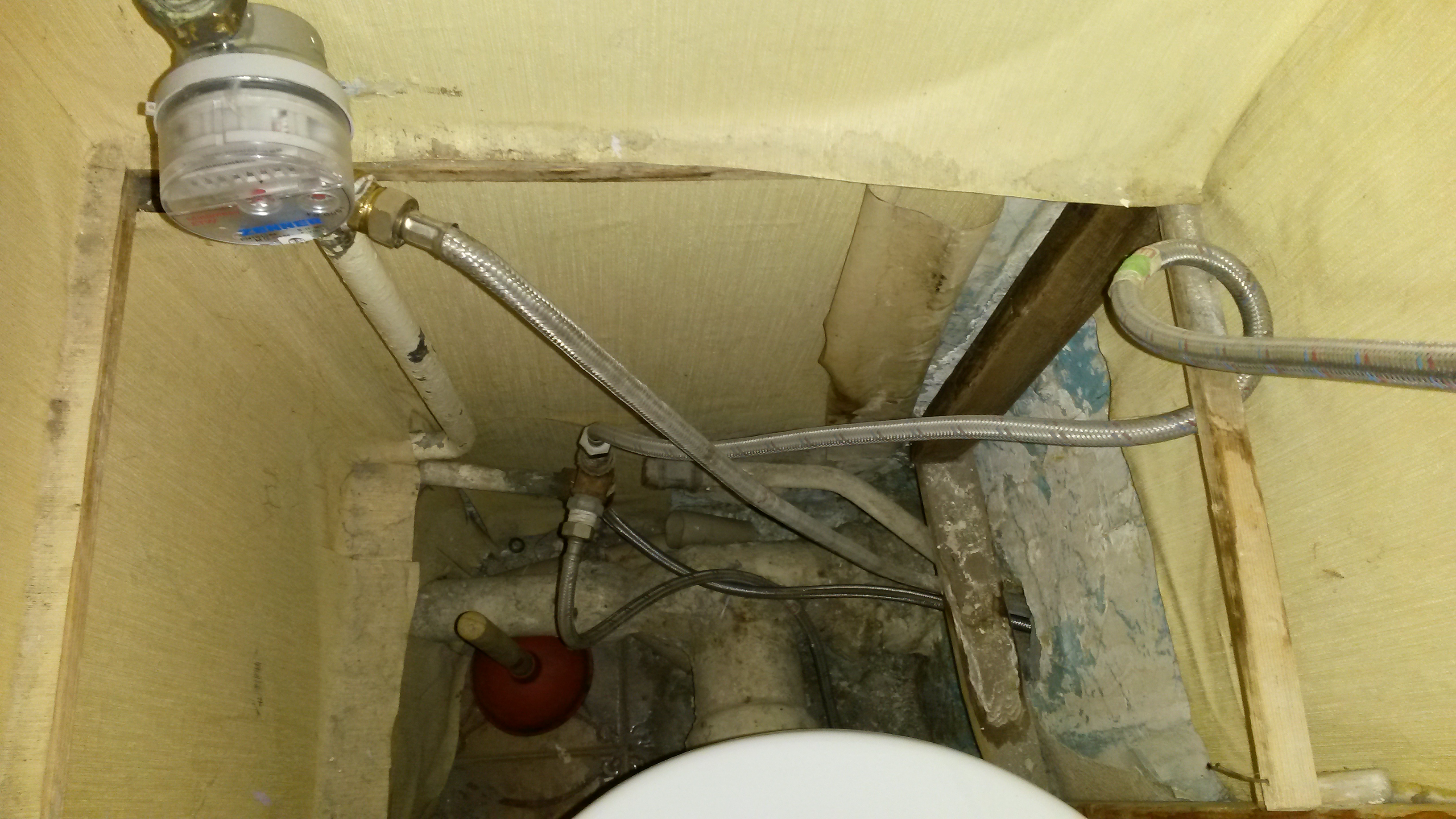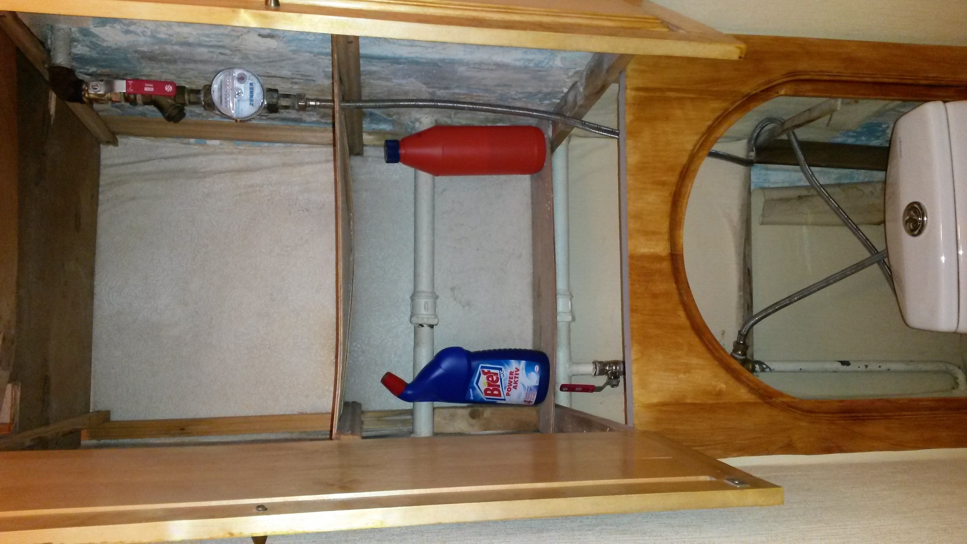 Kõrvalruumis kraanikausiga ühenduses olevad voolikud läbivad vabalt vaheseina ja ei ole seina sisse müüritud või kuidagi kinnitatud.