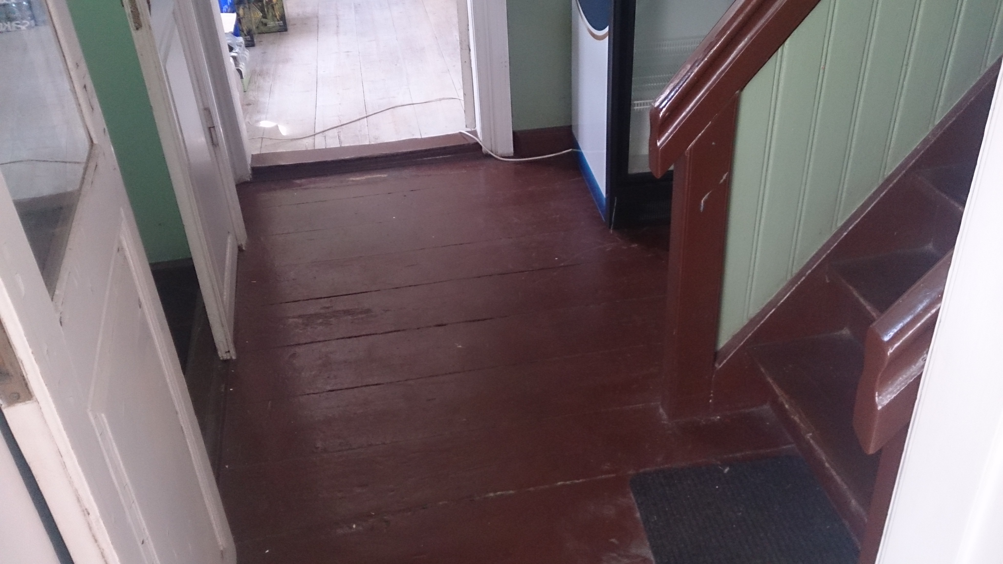 Vaja eemaldada vana puitmaja esikupõrandalt pruun põrandavärv. Tegemist on täispuitpõrandaga. Objekti mõõt on ca 3 ruutu ning lisaks puidust trepp teisele korrusele koos käsipuudega. Objekt asub Pärnus.