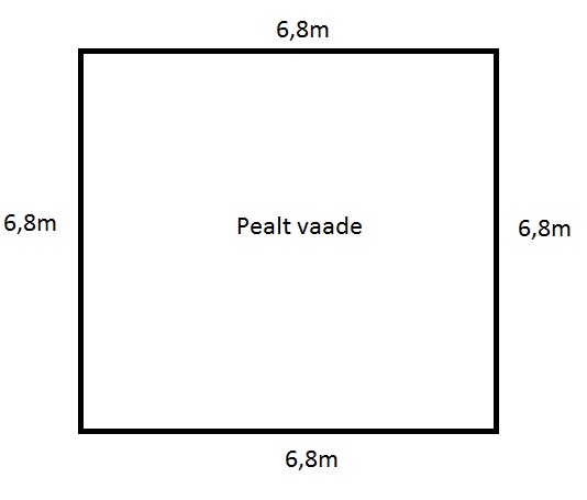 Katuse mōōtmeteks( nii laius kui pikkus) ca 6,8 meetrit ehk katuse pinda ca 47m2.