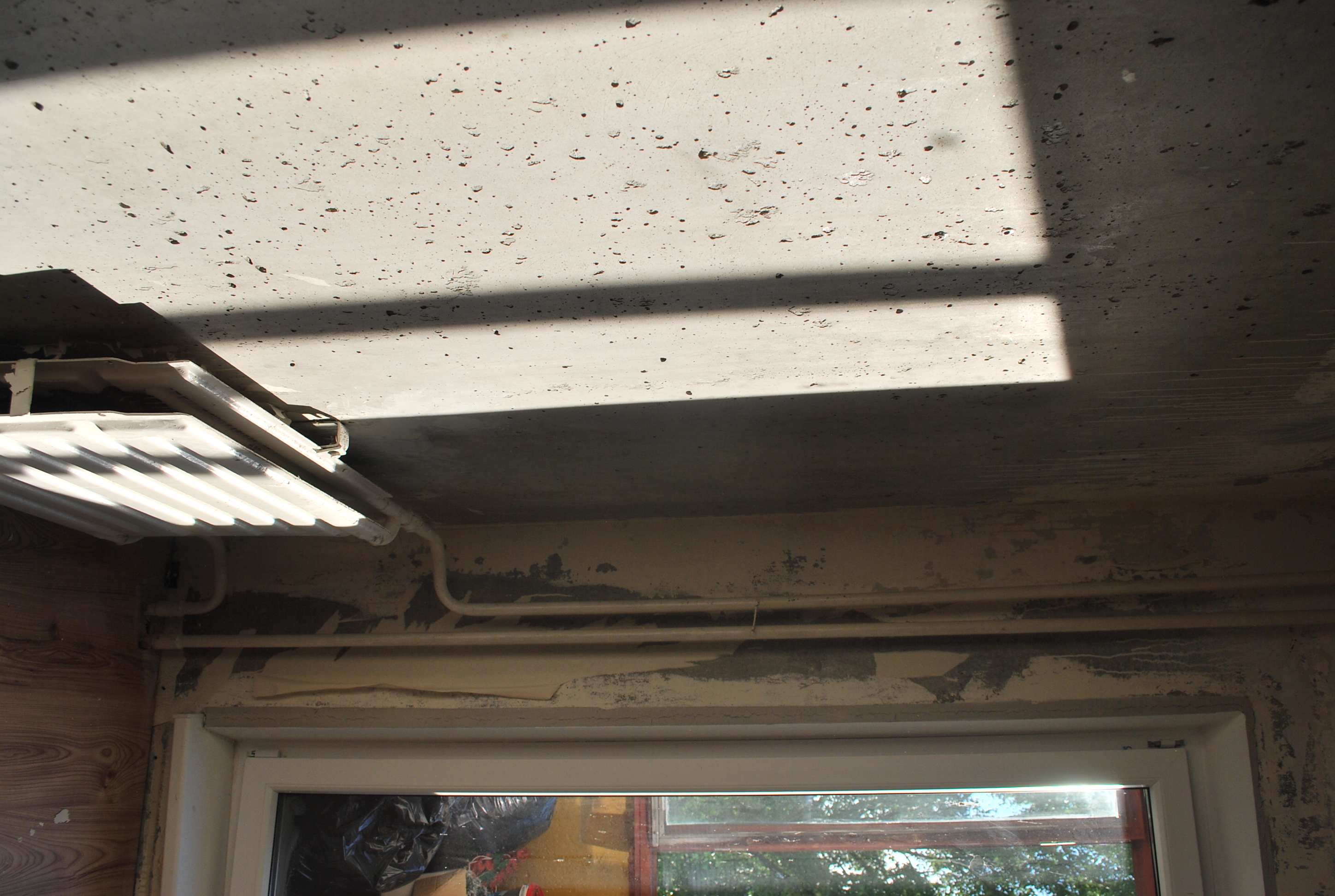 Laelt on vana värv maha võetud ning vajadusel oleks seda vaja korrigeerida ning seejärel lagi uuesti valgeks värvida.