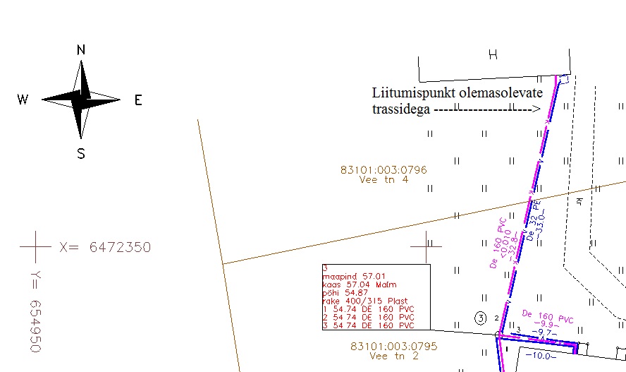 teostusjoonis ja planeeritava liitumispunkti asukohaga.