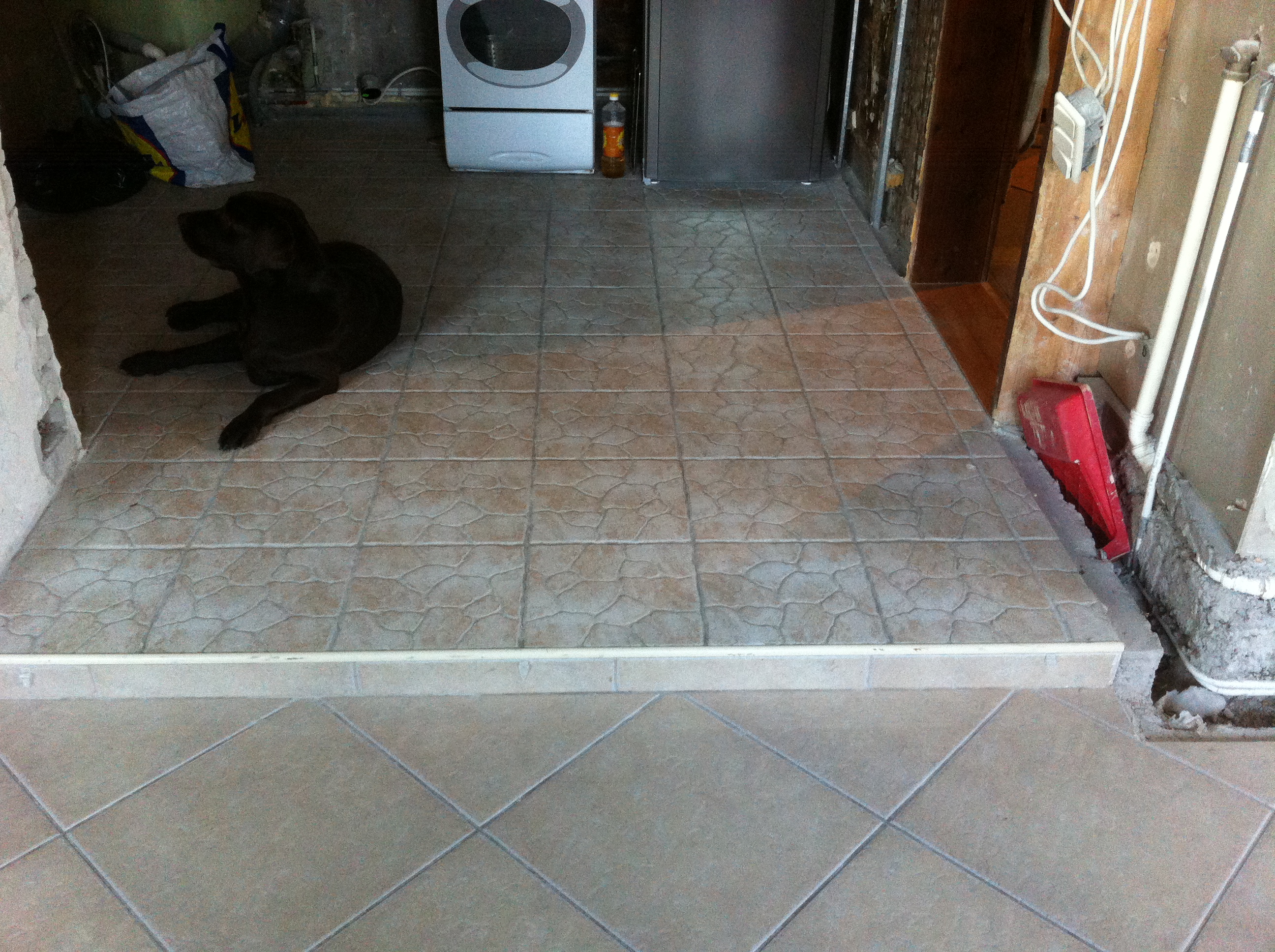 g. Põrandate plaatimine tualetis (1,5 m2) ja dušši ruumis (3 m2)