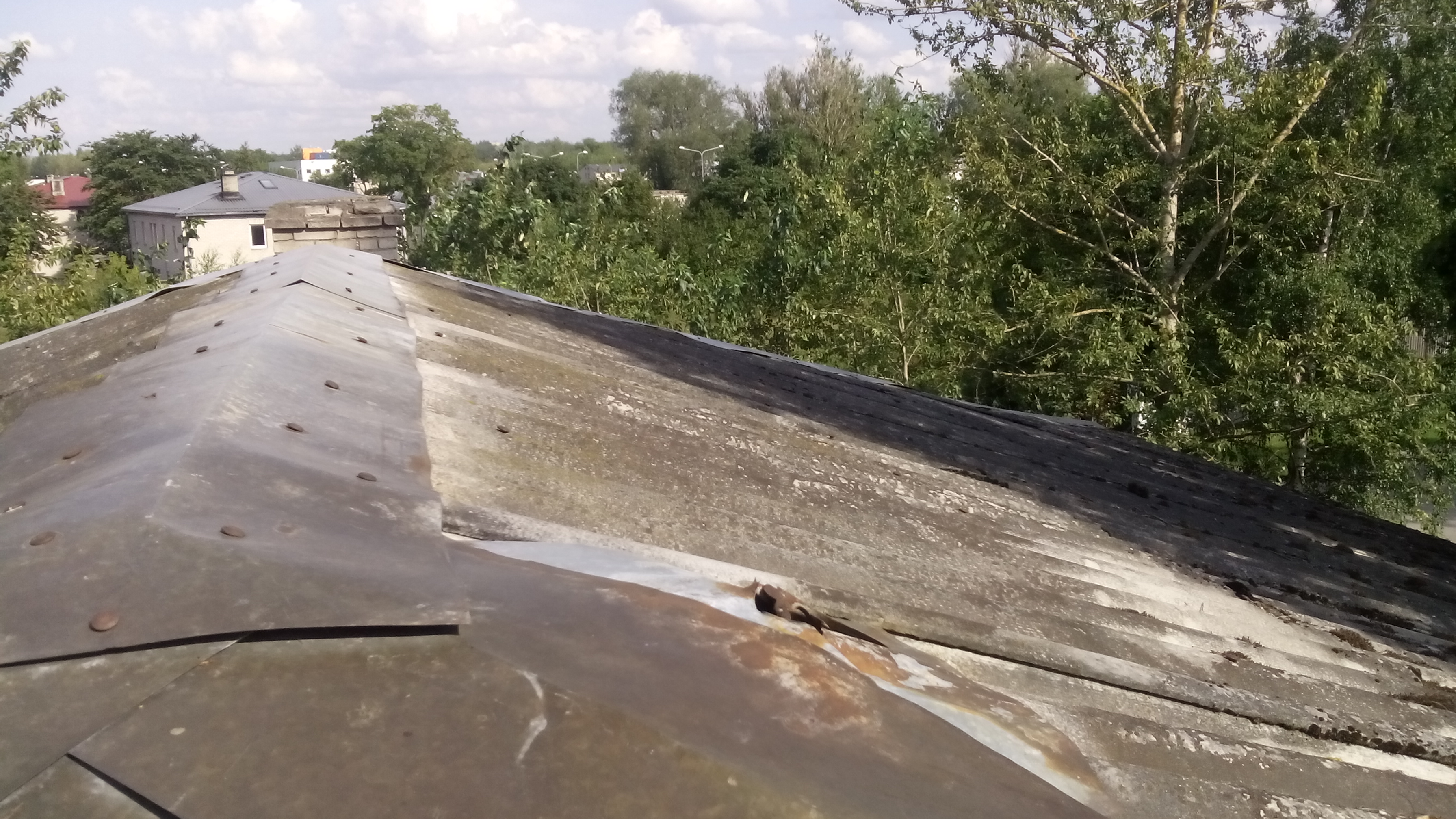 Töö ja materjal. Tsementhall värvitu eterniit katusekate. Vana katuse eemaldus ja utiliseerimine.