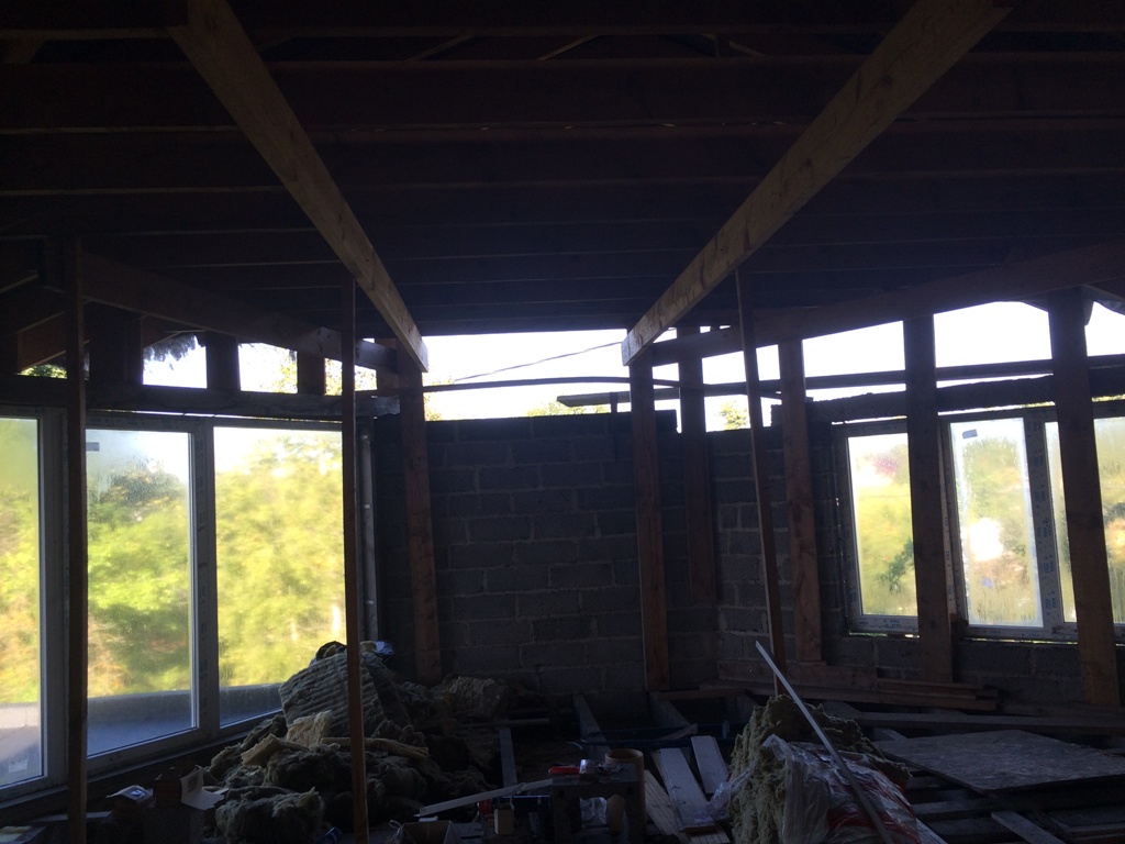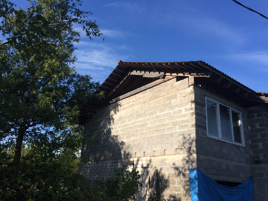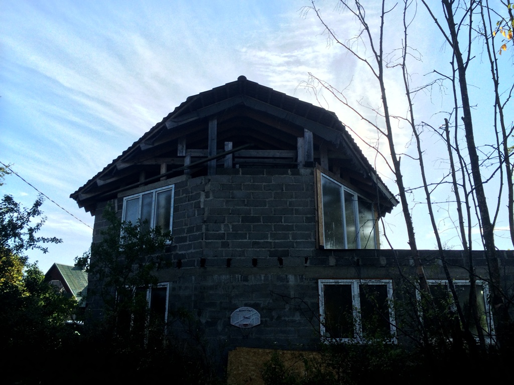 On vaja seinad katuseni ehitada, ühelt maja poolt (pildil aknatega) fibo200 ja kõik vajaliku (betoonvöö, pruss jms), teiselt maja poolt piisab OSBst teha.
