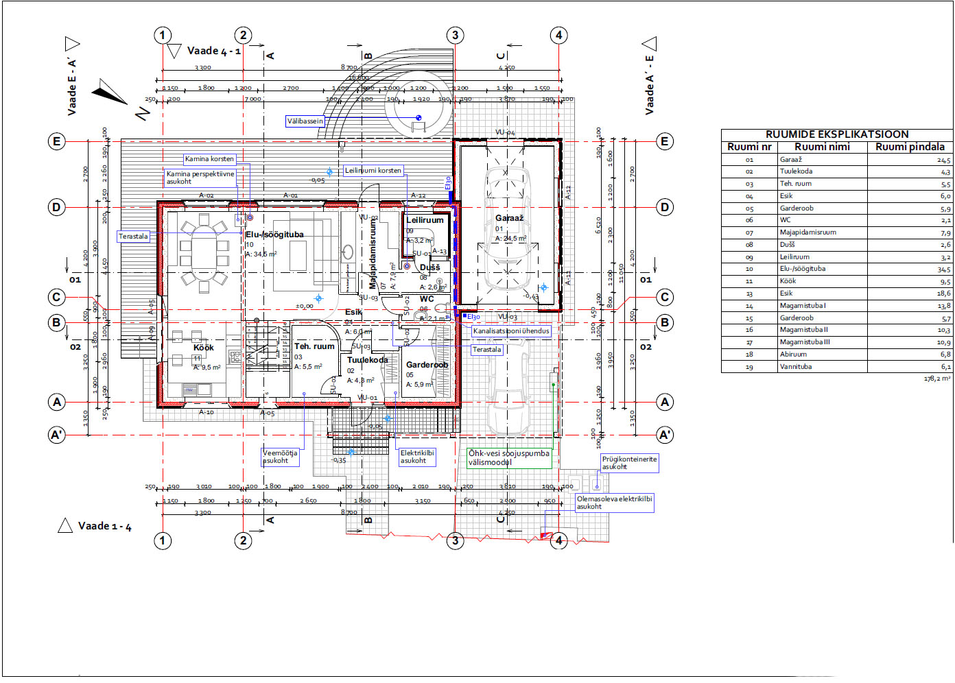 On vaja teha eramaja elektriprojekti: tugevvool, arvuti ja TV võrk, maakaabel, maandus, renniküte, jää ja lumesulatussüsteem.