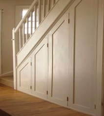 Otsitakse puidimeistrit, kes suudaks sisetrepi alla ehitada pildil näidatud hoiuruumi (võimalusel paari vaheplaadiga kuid võimalik, et vaheseinad ei osutu üldse vajalikuks) ning fotol kujutatud ustega. Hetkel on trepialune tühi ja ehituseks sobiv ajavahemik oleks 25-30.09