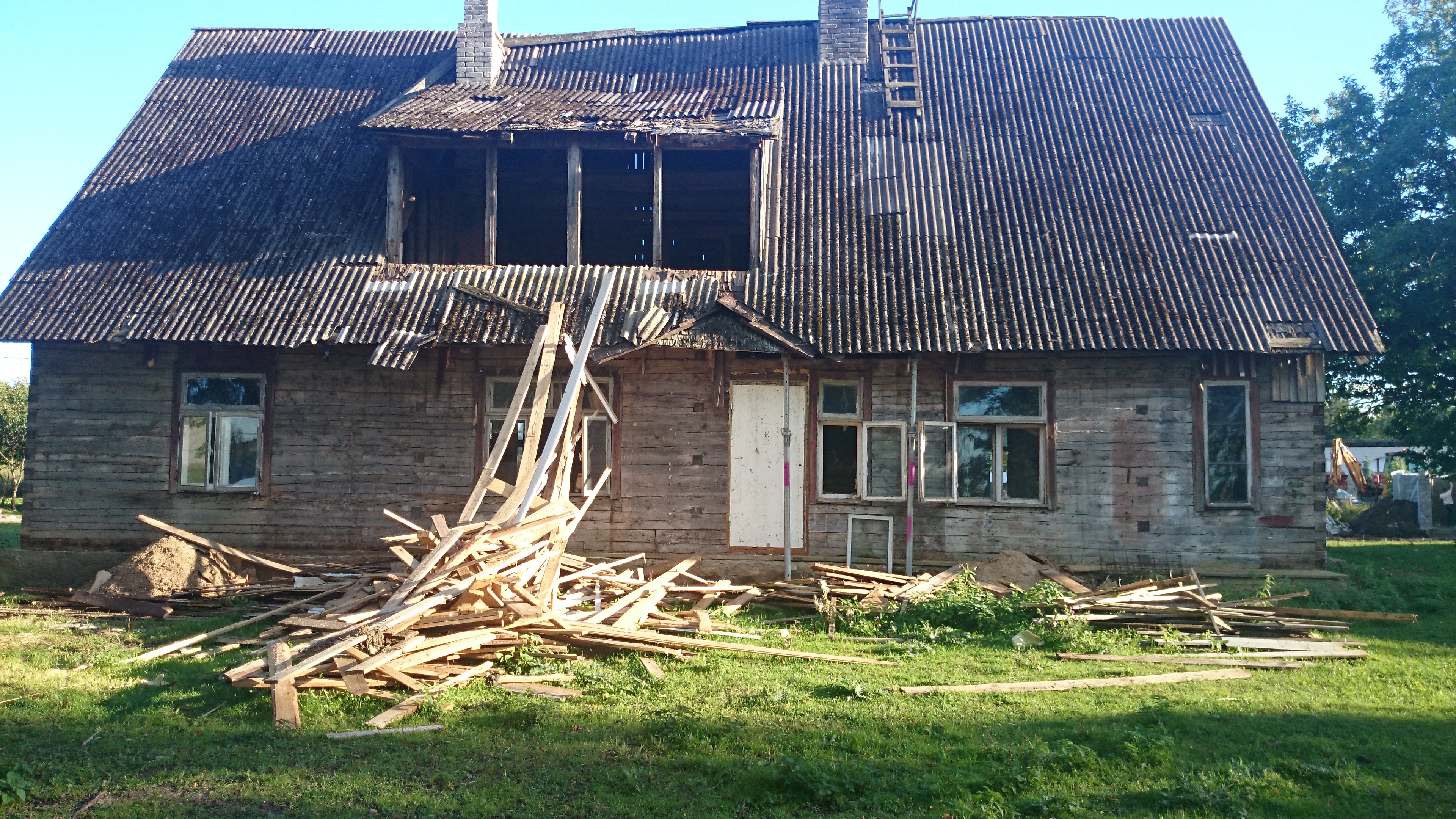 1932 aastal ehitatud 2 korruseline talumaja katus ja katusekonstruktsioon, vajab renoveerimist. Töödega on kiire kuna ilmad on vihmased, OSB plaat jääb talveks seisma ilma betuumen sindlideta ega aluskateta, ehk katuse pealiskihi tööd jäävad kevadeks 2016.