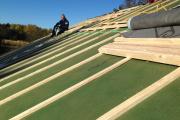 Vana eterniitkatusekatte mahavõtmine ja uue kiviprofiilige plekkkatuse paigaldus