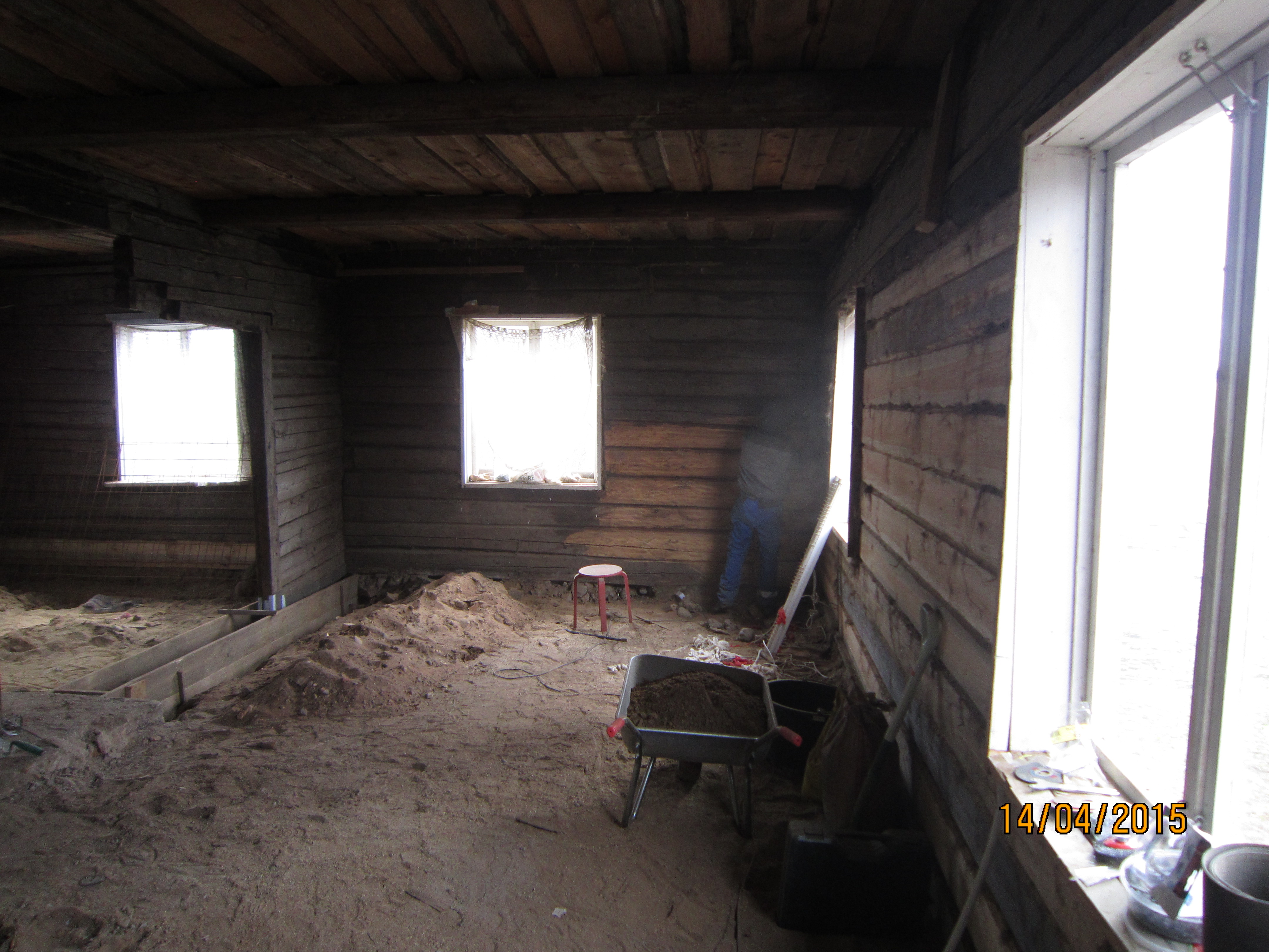 Majale oleks vaja teha ülemine vöö. Üks pool majast on palgist ja teine pool tuhaplokkidest. kaks rida ülemisi tuhaplokke on vöö puudumise tagajärjel liikunud väljapoole mõlemal küljel, samuti ühe seina palgid. kuna katus on nagunii vana ja vajab väljavahetamist, siis oleks vaja see ka maha võtta, seinad sirgeks ajada, vöö teha ja koht kus palgid ja tuhaplokid kokku saavad, korralikult fikseerida. ühel palkseinal oleks vaja vahetada välja kaks ülemist palki. lisaks muud jooksvad tööd mida praegu ette öelda ei oska.