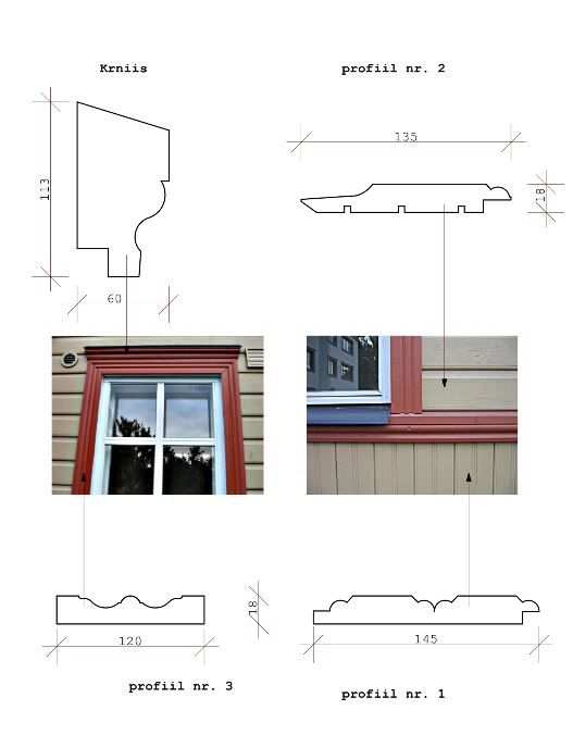 Olulised arhitektuursed detailid fassaadidel on laudis, karniisid, puidust akende piirdelauad, nurgalauad, vahevöö ja räästad. Säilinud on üks originaal aknaraam tänava poolt.