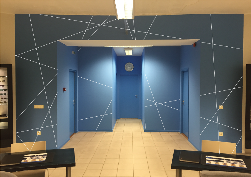 Meie poolt oleks projektor ja slaid millelt jooksevad seinale triibud - teie paneksite shabloonid (teibiribad) triipude külgedele ja värviksite seest ära.