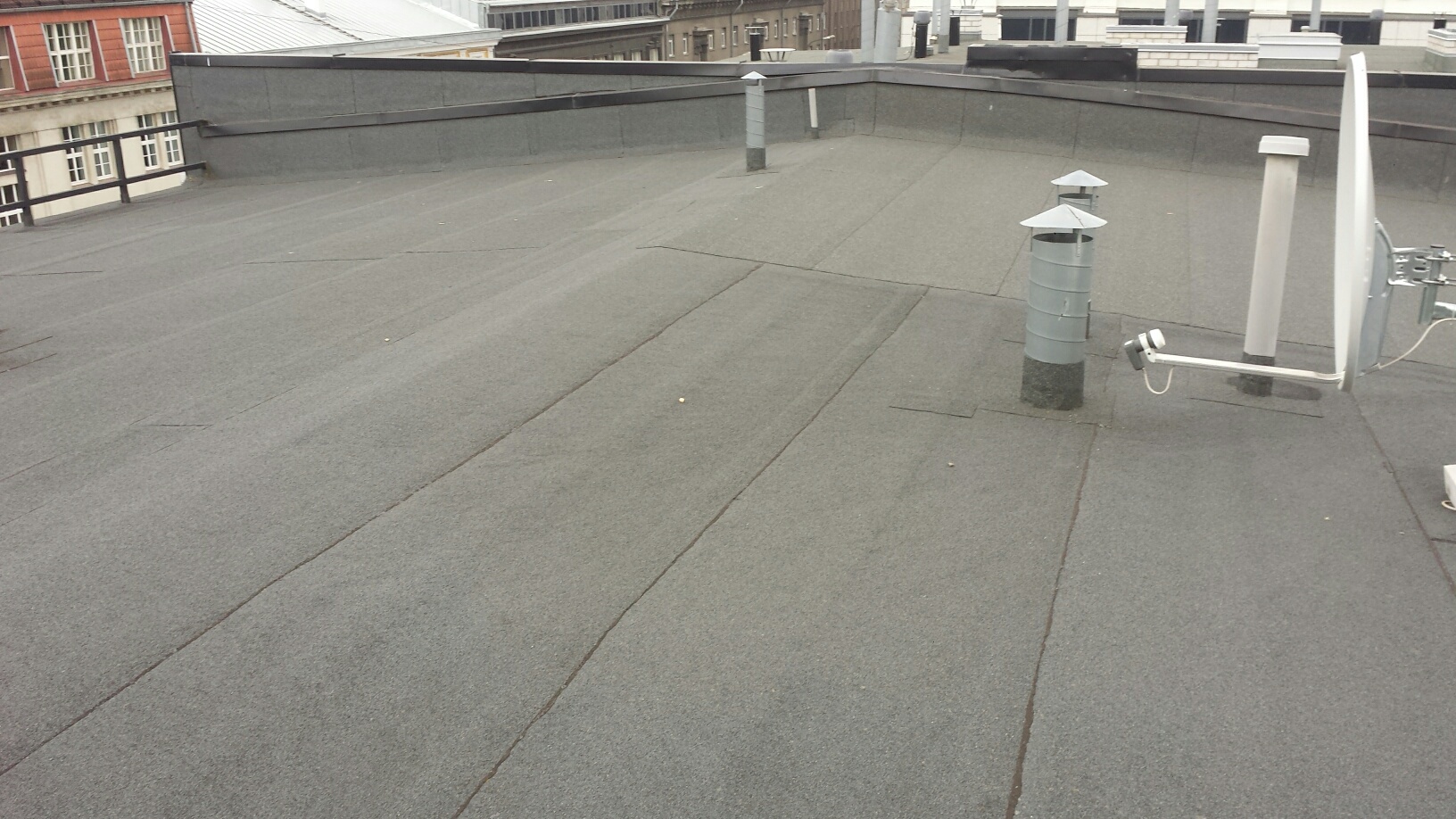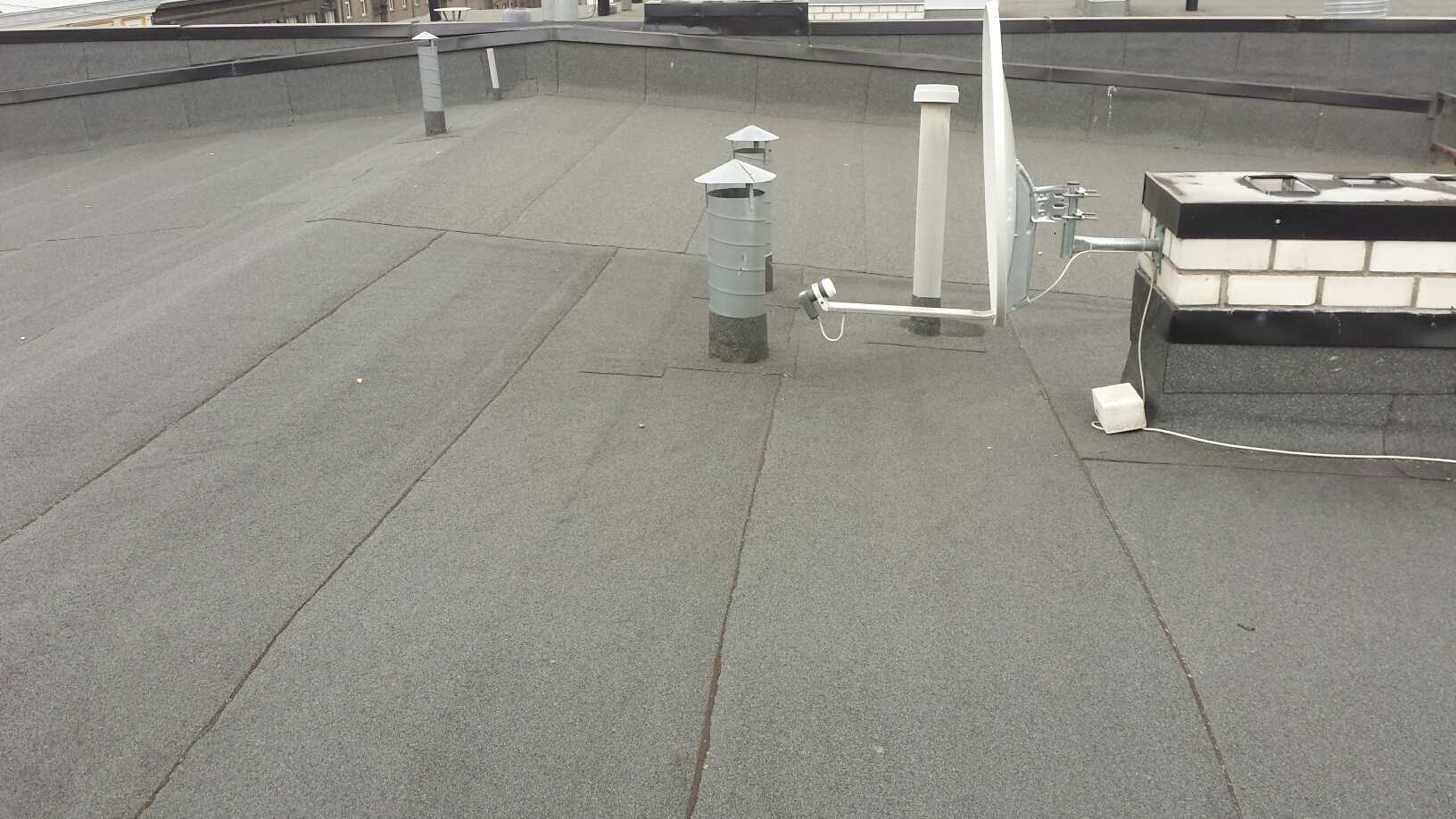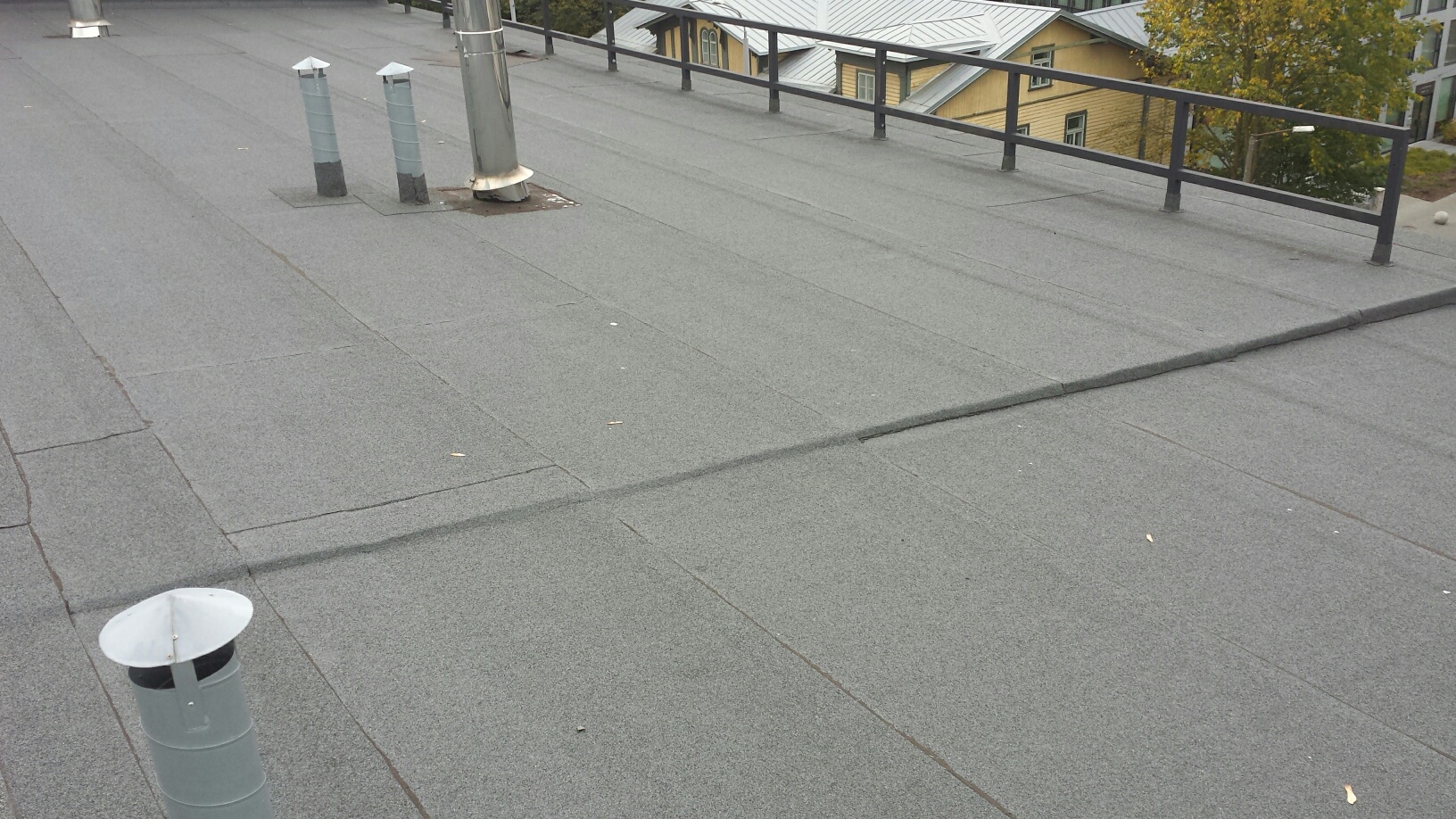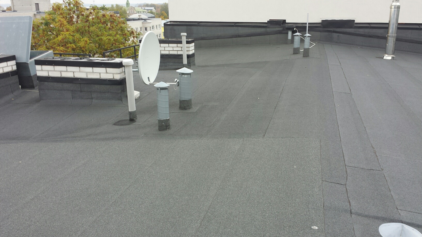 Tallinnas, Kesklinnas vajab lame tõrvapapp katus remonti. Kuu aega tagasi tekkis viimase korruse korteri lakke 10x10 cm veel kahujstuse laik. Katus on ehitatud 2005a. Näha ei ole mitte midagi. Tõenäoliselt on vaja üle lasta liite kohad või panna uus papp peale umbes 3m lai x 10m pikk.
