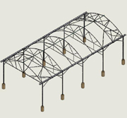 Metallkarkassi montaaž 9,6m x 50m. Postide samm 2m. Kahekordse kile paigaldus harjatuulutusega. Vundamenditööd olemasolevale vundamendile postide valamine 2m sammuga.