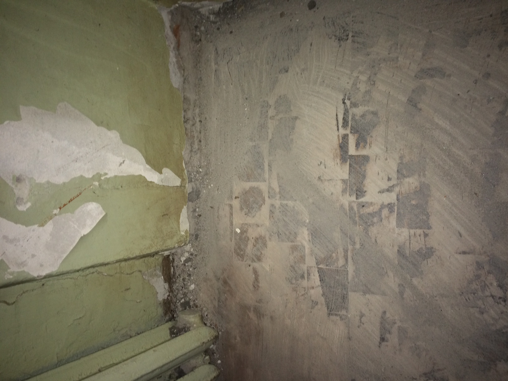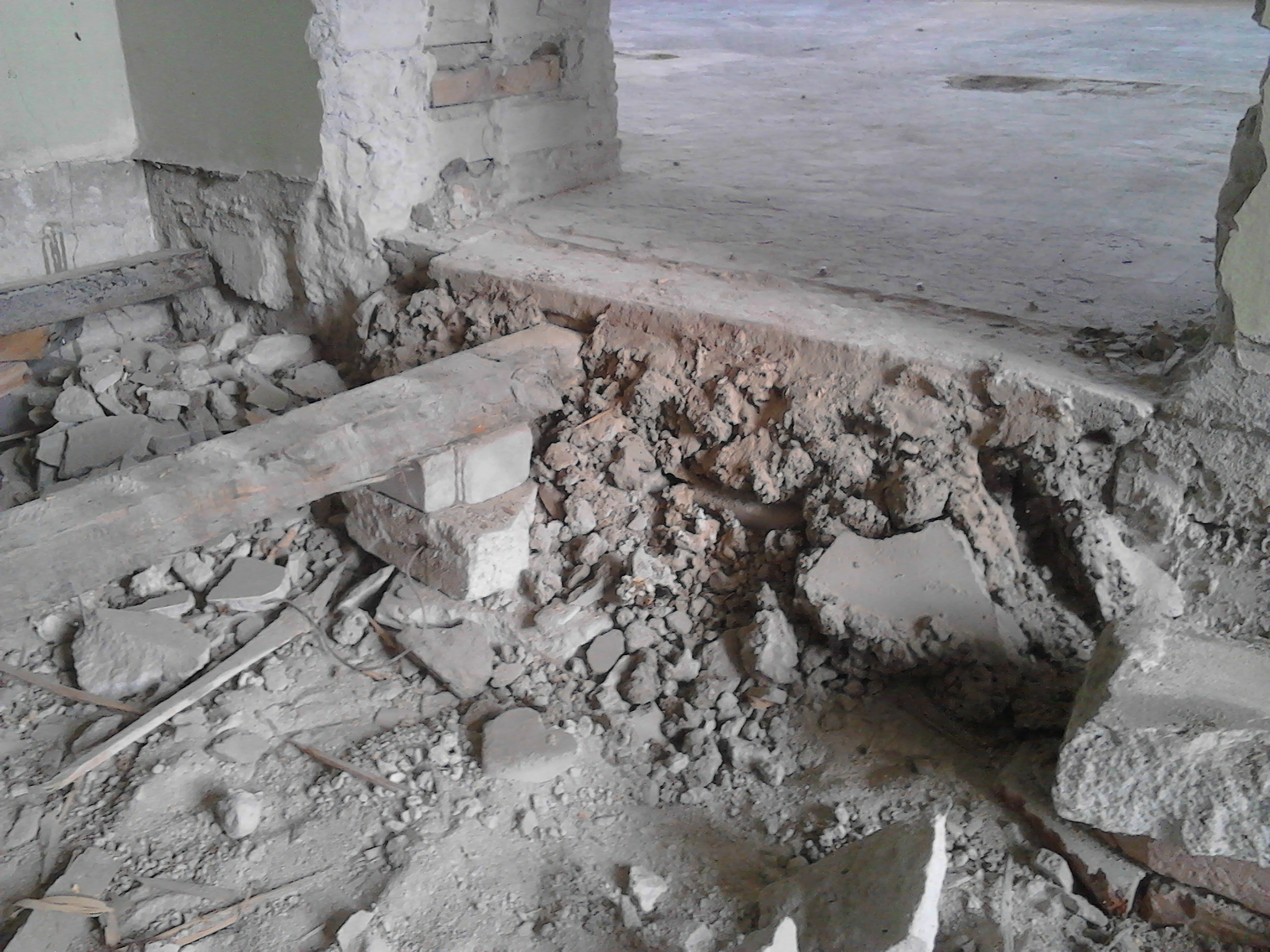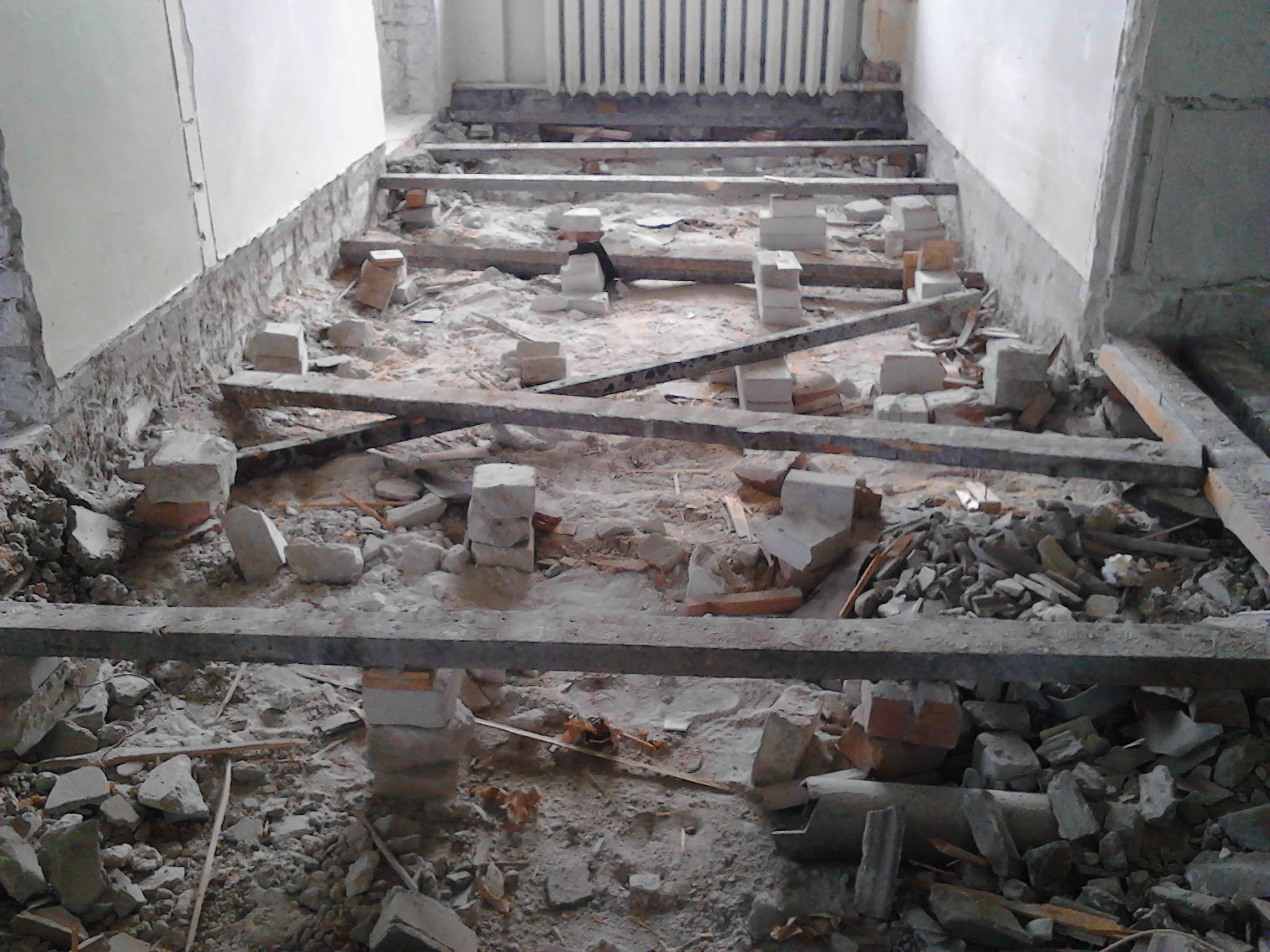 1. Pindala, kus varem on juba ehitatud aluskihid paneelide peale ja teostatud betoonivalu + viimistlus (fotodel näha kahhelplaatidest põrand).