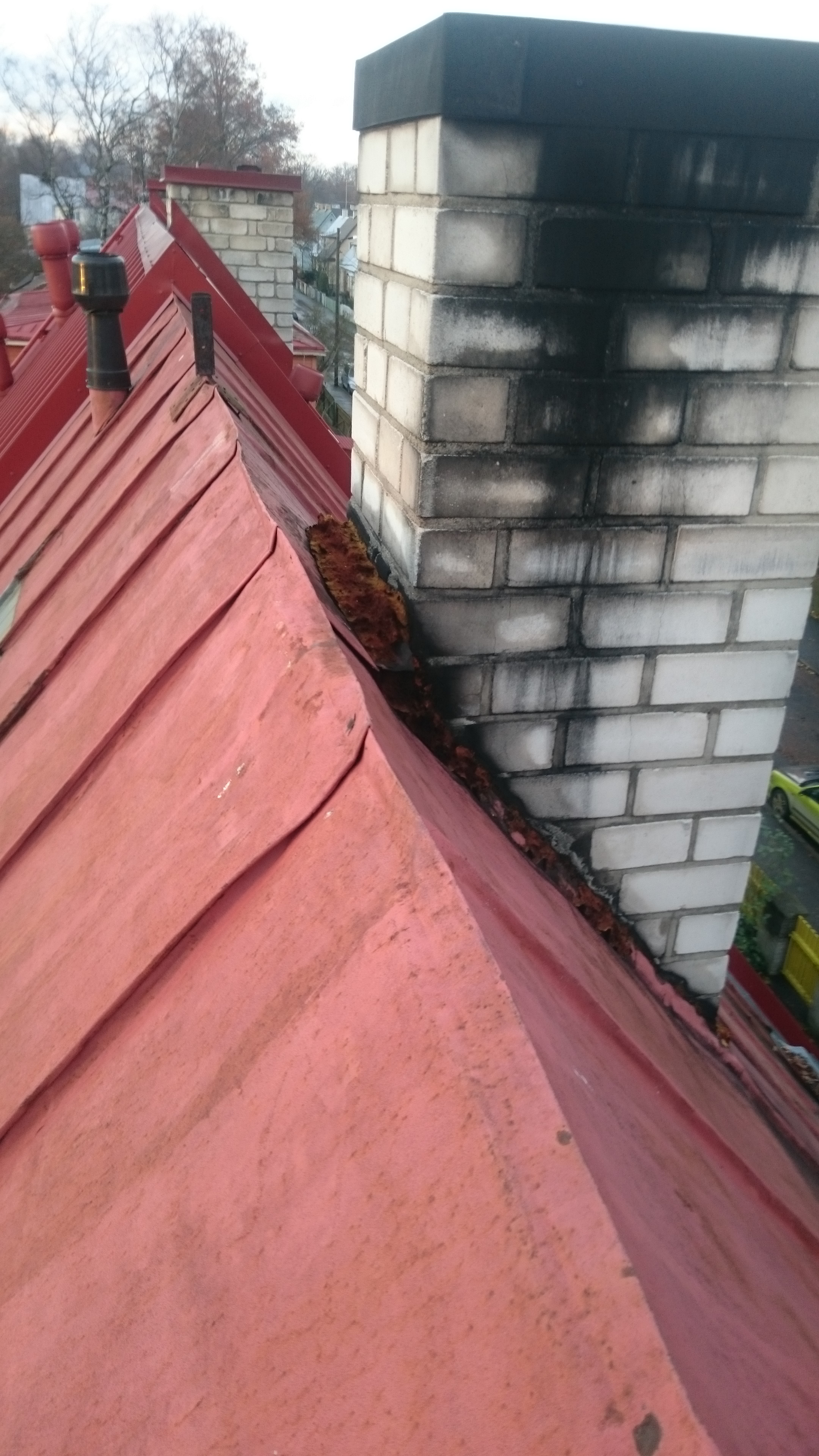 Praegune lahendus makroflexist ja puitprussist ei ole enam vettpidav ning vesi imbub mööda korstnajalga katusealusesse.