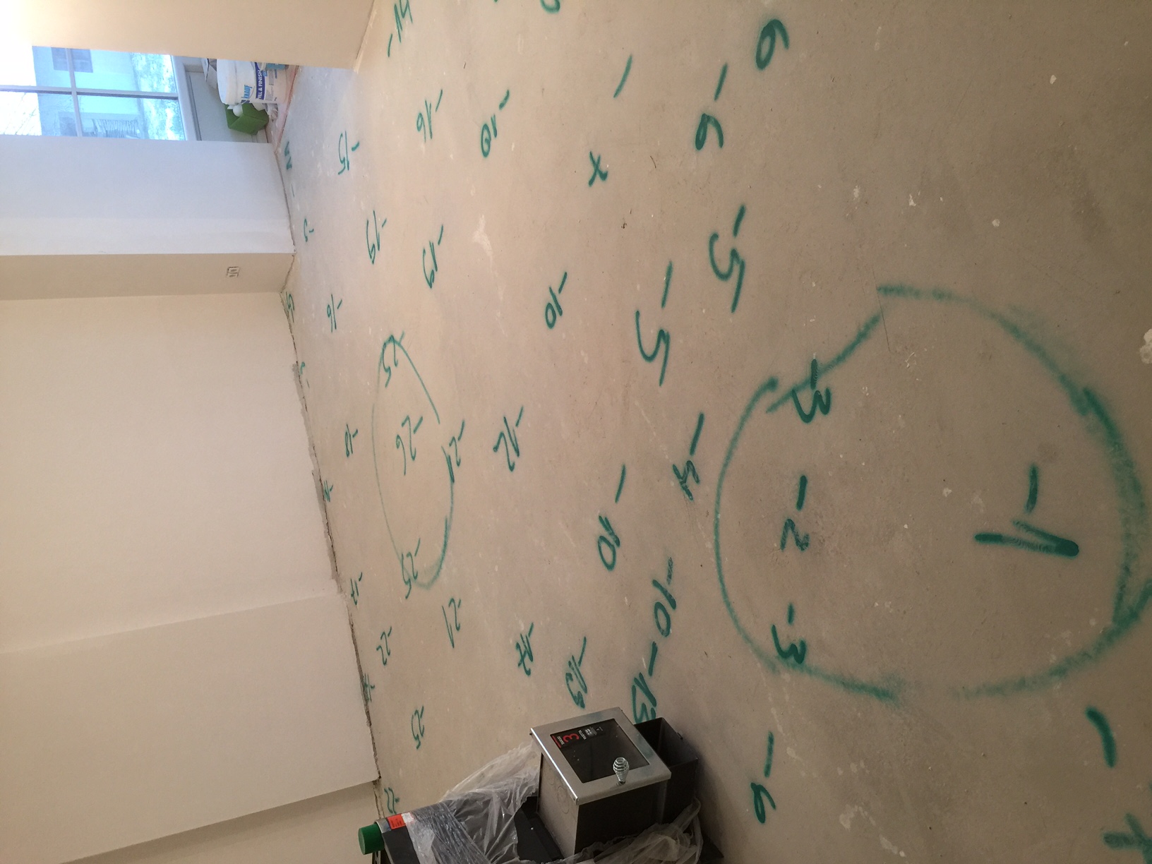 Põranda madalamad ja kõrgemad kohad on aparaadiga mõõdetud ja maha märgitud.