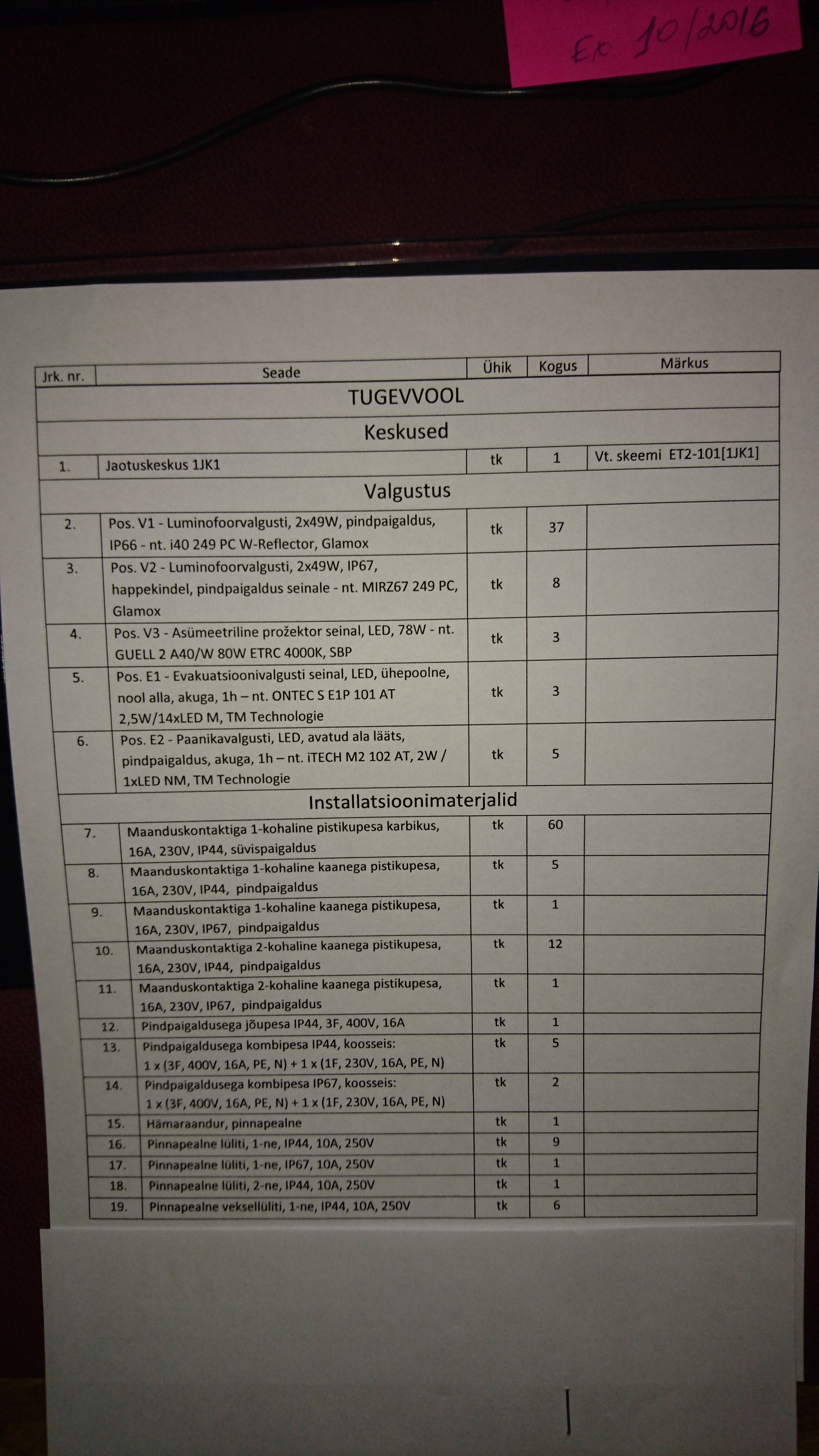 kõik materjalid peale VALGUSTITE hanke võitja poolt! Nõrkvoolutööd ei kuulu hankes küsitud tööde hulka.