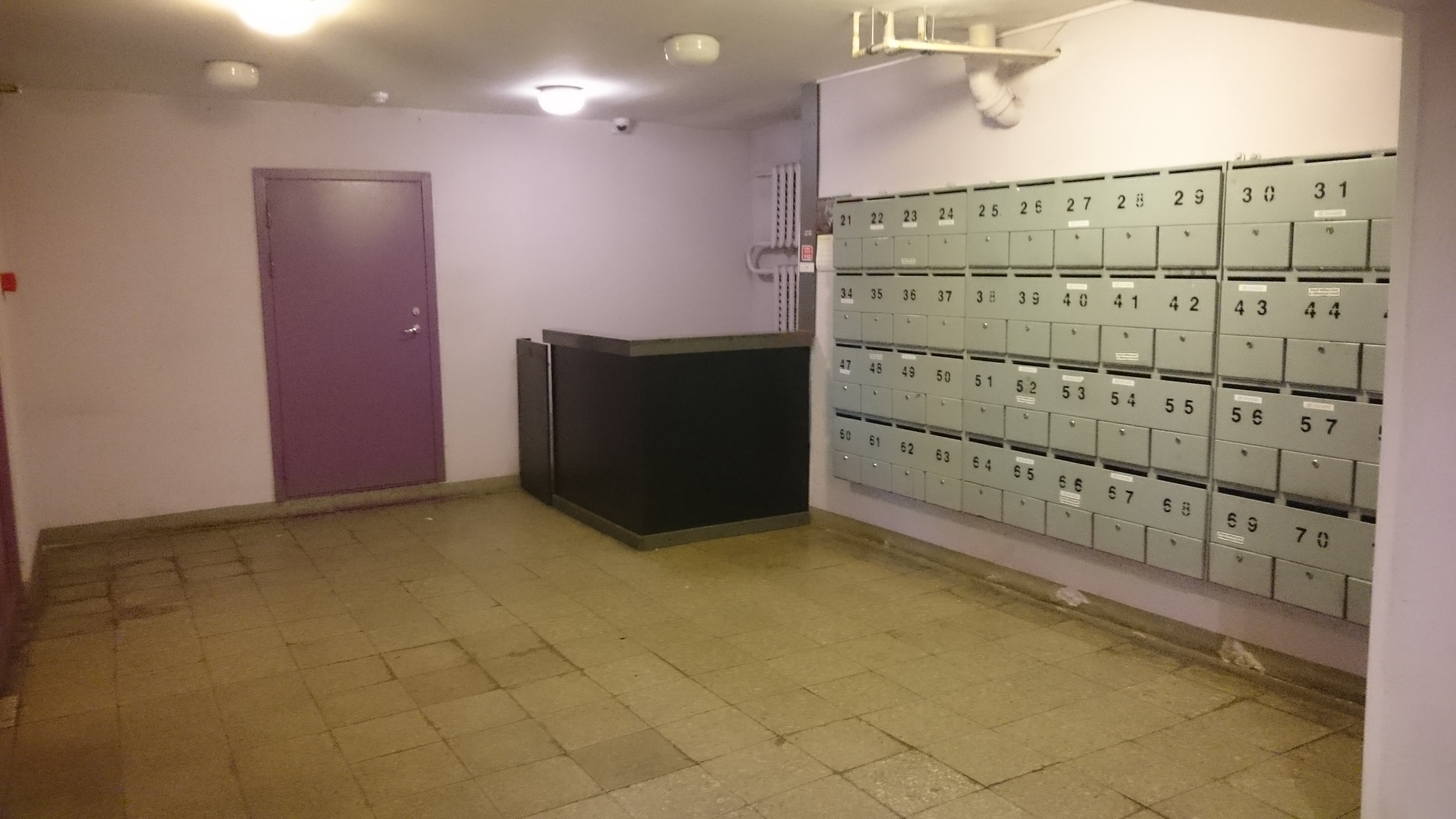 Tegemist on 13 korruselise kortermaja fuajeega, inimeste liikumine on võimalik suunata tagumise ukse suunas
