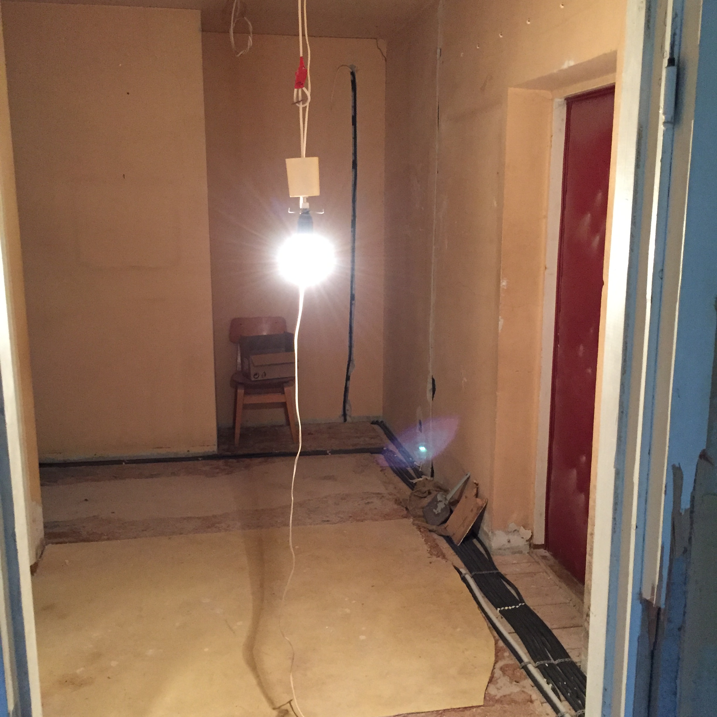 Paigaldatud uued elektrijuhtmed seintesse ja põrandatesse. Uus kilp.