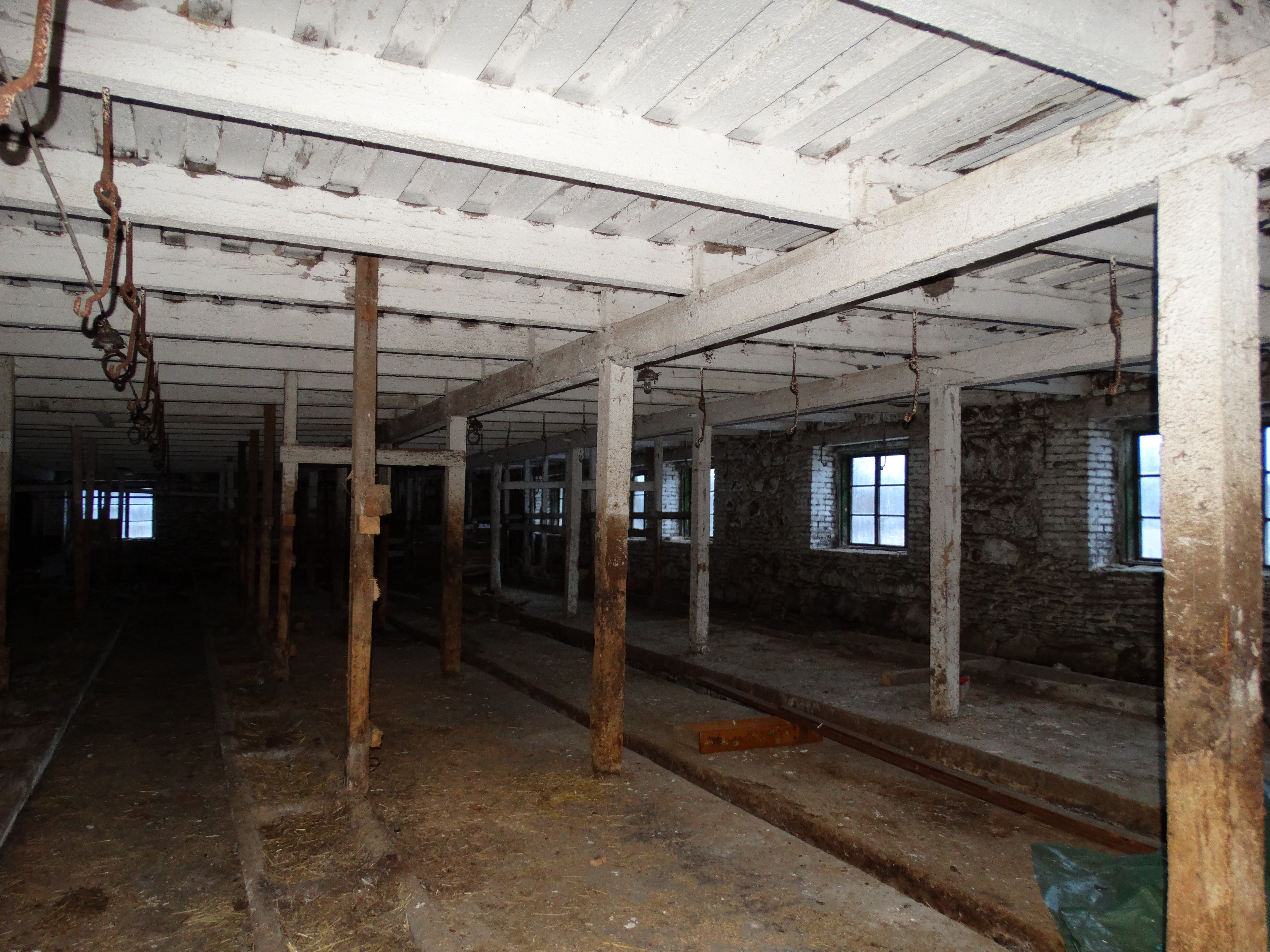 Looduskivist müüridega hoone 20x30m, katuse kalle ca. 40 kraadi, puitkarkass, roovistik, pilbas ja eterniit. Sarika pikkus ca. 15 m. Otsaviil karandlaudis. Tehnikaga ligipääs igast küljest, pinnase kandevõime hea.