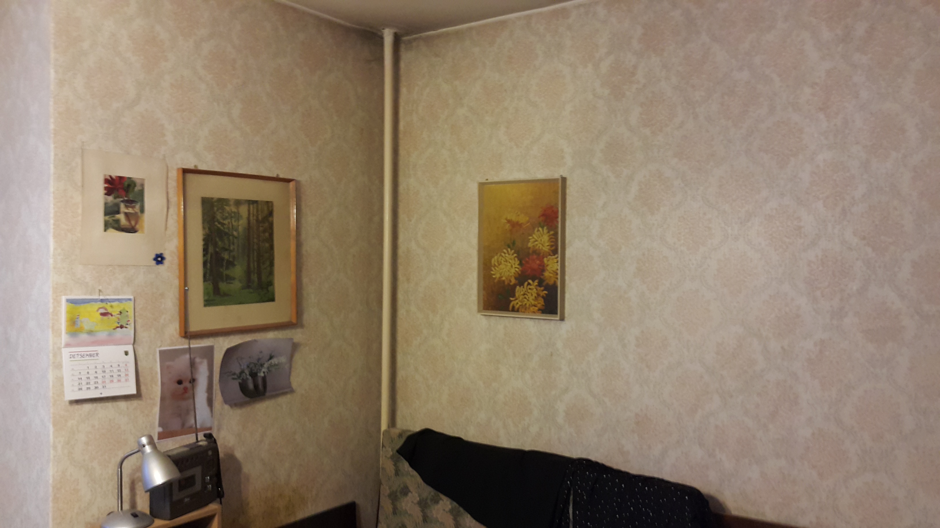 - Seinad ja laed viimistleda ja värvida. Elutoa ühte seina paigaldada fototapeet.